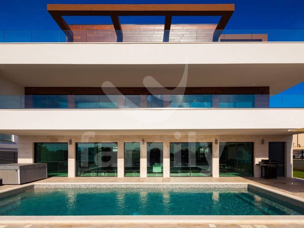 Ova moderna vila opremljena je visoko kvalitetnim namještajem po narudžbi, kvalitetnim sanitarijama, ALU stolarijom u boji. Termoizolacija objekta nalazi se na fasadi i ravnome krovu. Za hlađenje koriste se 9 jednica klima uređaja po jedna u svakoj spavaćoj sobi i dnevnom boravku. Moderna LED rasvjeta daje poseban ugođaj sobama u ovoj prekrasnoj vili. U dvorištu se nalaze 3 parkirna mjesta.