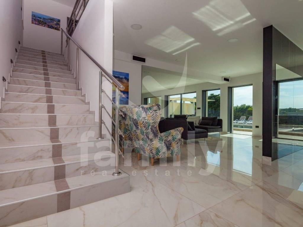 PRIZEMLJE: Prostrani dnevni boravak s izlazom na bazen, Kuhinja po mjeri, Toalet, Ostava,1. KAT: 4 Spavaće sobe s zasebnim kupatilom i izlazom na terasu.2. KAT: 1 Spavaća soba s zasebnim kupatilom i terasom Sauna i tuš u fitness sobi Jaccuzzi na otvorenoj terasi s prekrasnim pogledom na moreDVORIŠTE: Bazen Sunčalište, Stol za ručavanje