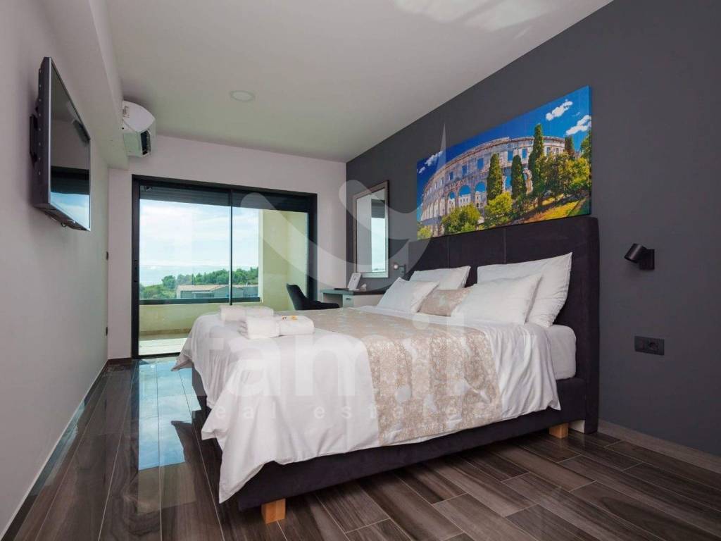 Općina Medulin smještena je na samom jugu istarskog Poluotoka u priobalju. Medulin, nekad ribarsko mjesto, danas je moderno turističko središte koje se u zadnjih deset godina istaknulo kao jedna od najpoželjnijih turističkih destinacija u Hrvatskoj što dokazuje i najveći broj ostvarenih noćenja proteklih godina. Jakom razvoju Medulina osim pogodne lokacije doprinosi i odlična prometna povezanost. Blizina autoceste i Zračne luke Pula na udaljenosti od 7,5 km.Upravo u naselju Premantura smještena je ova luksuzna vila sa bazenom na svega 400 m od mora s predivnim panoramskim pogledom na more. Vila je smještena na zemljištu površine 633 m2, a proteže se na tri etaže sa ukupno 480 m2 bruto stambene površine.Vila se sastoji od: