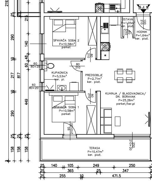 Ekskluzivna ponuda u Benkovcu - gradnja u tijeku - bez agencijske provizije Benkovac je odlično povezan autoputen A1, kao i Zračnom lukom ZADAR (koja je na slici). Isto tako Vam Benkovac nudi sve uvjete za stalan život u tom prelijepom dijelu Dalmacije kao i mnogo mogućnosti za dolazak kao turist. Mnoge prelijepe plaže (kao na slikama) su sasvim blizu kao i razne atrakcije, koje vrijedi obići... Valja napomenuti da je obnovljen i uređen i sajam, koji je naj veći u cijeloj Hrvatskoj. Općina Benkovac je u zadnjih par godina mnogo uložila u svoj grad, te je npr. uredila šetalište, tržnicu, ceste. Zadnje godine je izgradila i otvorila novu knjižnicu kao i salu za razne skupove i druženje itd. KRATKI OPIS GRAĐEVINE U izgradnji je samostojeća stambena građevina, katnosti: prizemlje, 1. kat, 2. kat i potkrovlje, sa ukupno 14 stambenih jedinica, sve prema projektu i postojećim zakonima. Svaki stan ima svoje vlastito parkirno mjesto i svoje spremište/šupu. BITNO: Stanovi su od 21 m² do 100 m² stambene površine i dodatne terase/loggie ili vrt. Prizemlje: Stan 9.: Hodnik, Kupaonica, 1. Spavaća soba, 2. Spavaća soba, Kuhinja- Blagovaonica- Dnevni boravak,Terasa od 10,47m². UKUPNO: 67,05 koeficijencije , uz to inkludirano parkirno mjesto i šupa za cijenu od: € 168.125,-- EURA PROGRAM KONTROLE I OSIGURANJA KVALITETE OPĆENITO Projektiranje, građenje i održanje građevine obavlja se prema odredbama Zakona o gradnji, ostalim posebnim zakonima i propisima donesenim temeljem zakona, te prema hrvatskim normama i važećim pravilima struke. Za sve daljne informacije nam se javite putem emaila: info@coric-invest.com ili na tel.: +385 95 3784 416 ili +43 676 93 130 11 Ružica Ćorić