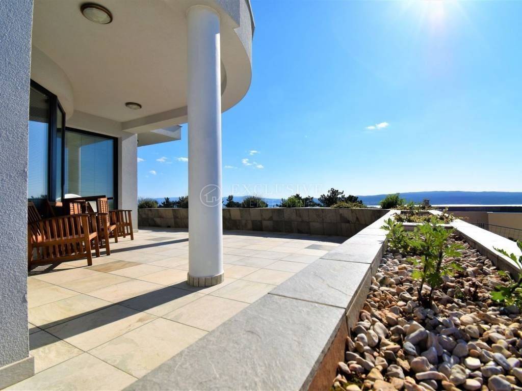 Prvi kat: šest luksuznih spavaćih soba, svaka sa svojom kupaonom, klimom, tv-om te balkonom sa panoramskim pogledom na more i otok Krk. Sa prvoga kata stepenice vode na krovnu terasu površine čitave kuće (cca 200m2) sa koje puca pogled na čitavi Kvarnerski zaljev - jednostavno veličanstveno.