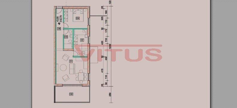 Otok Krk, Omišalj. Dvosoban apartman površine 68 m2 nalazi se na prvom katu moderne novogradnnje sa četiri stana. Sastoji se od kuhinje sa blagovaonicom i dnevnim boravkom, dvije spavaće sobe, kupaonice i natkrivene terase. Visoka kvaliteta gradnje i opreme koja uključuje: PVC stolariju sa električnim roletama, strujno podno grijanje, protuprovalna vrata, klimatizaciju, te podne obloge i sanitarije vrhunske kvalitete. Apartmanu pripada i okućnica od 56 m2 i jedno parkirno mjesto, a nalazi se na odličnoj lokaciji, samo 150 m od mora!
