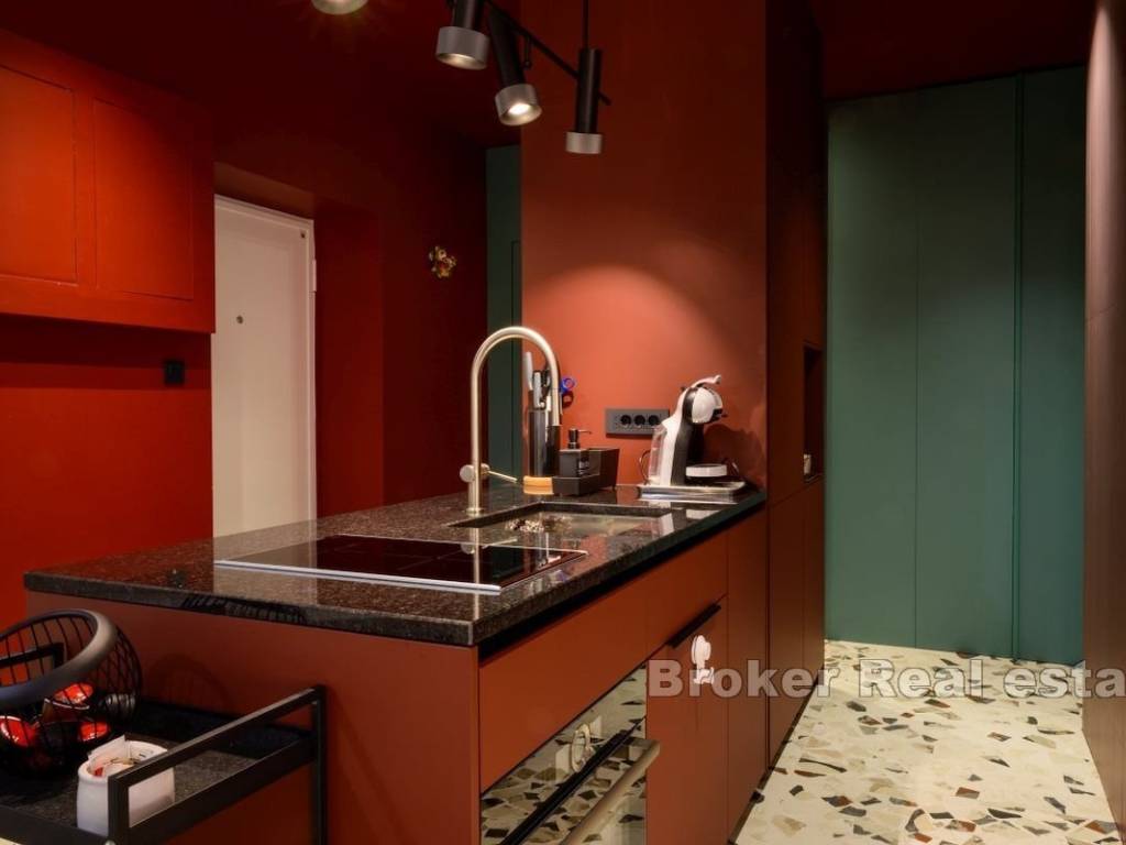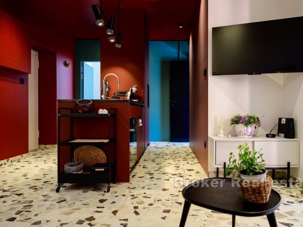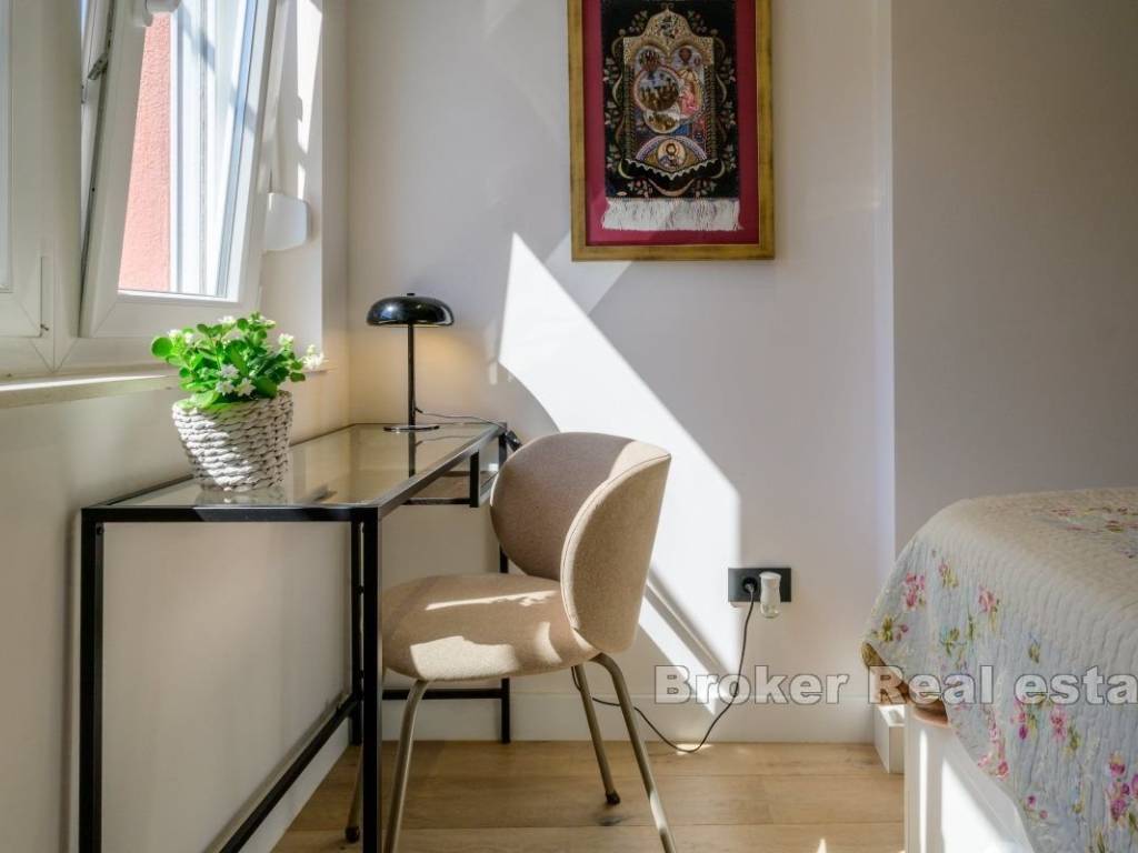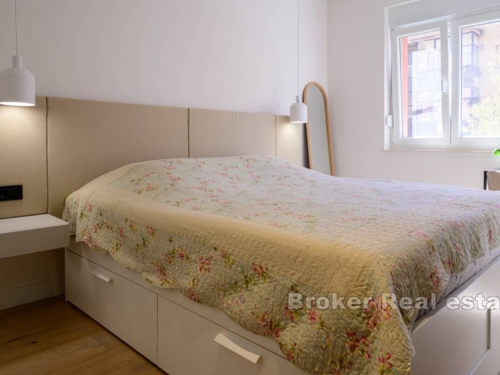 Iznajmljuje se dugoročno potpuno namješten i opremljen stan na 1. katu stambene zgrade na elitnoj lokaciji, Bačvicama. Stan je površine 48 m2, cijeli orijentiran na jugu. Sastoji se od jedne, klimatizirane spavaće sobe, kuhinje s blagovaonicom i prostranim, dnevnim boravkom u jedinstvenom prostoru. Stan također posjeduje balkon južne orjentacije. Obzirom na položaj, cijeli prostor je osunčan tokom cijelog dana. U slučaju ovog stana, valja napomenuti da se radi o stanu koji je nedavno potpuno renoviran i u čiju se renovaciju i opremanje dosta uložilo. Lokacija stana je vrlo mirna, a u blizini su svi potrebni sadržaji. Plaže, trgovine, brojni restorani, škola i vrtići. Iz stana se do srca grada dođe pješice za 10 minuta. * S obzirom na promjenjivost i dinamiku iznajmljivanja, oglas je informativnog karaktera te ne mora nužno značiti da je ovaj stan dostupan za najam.