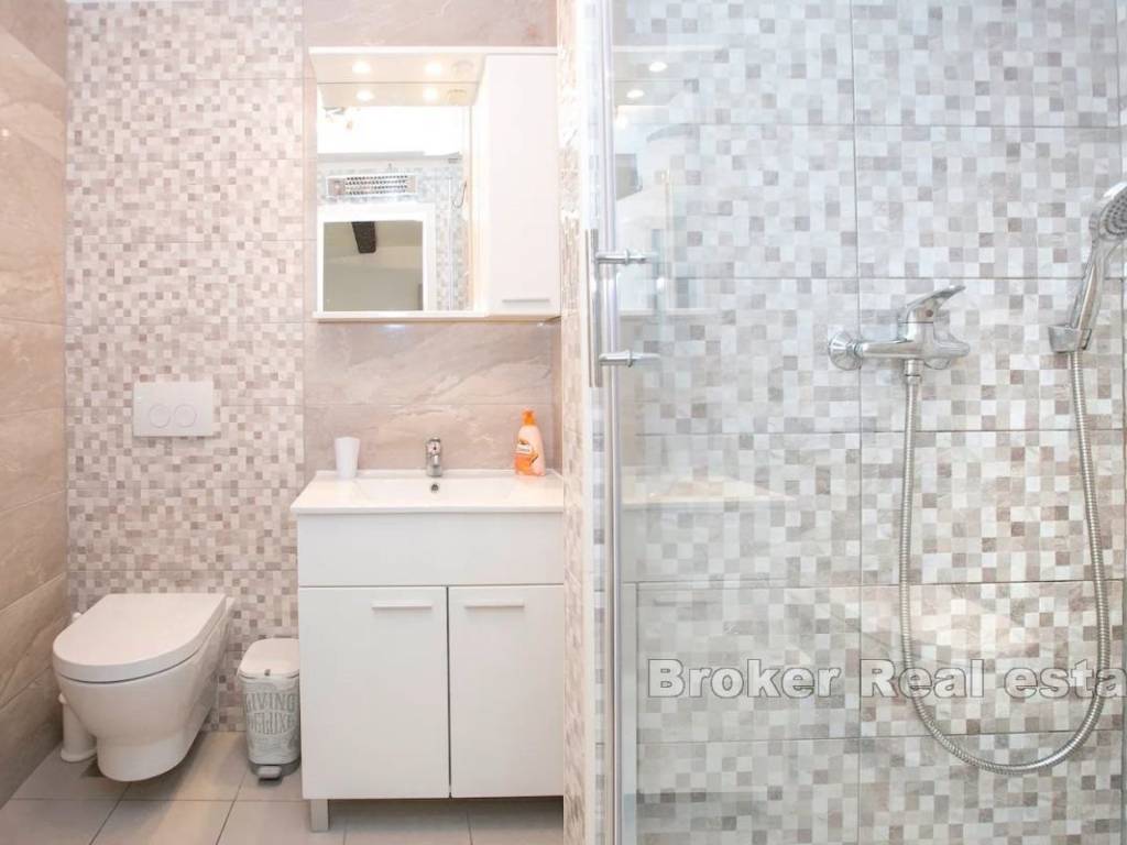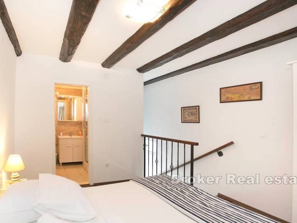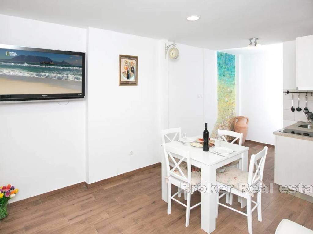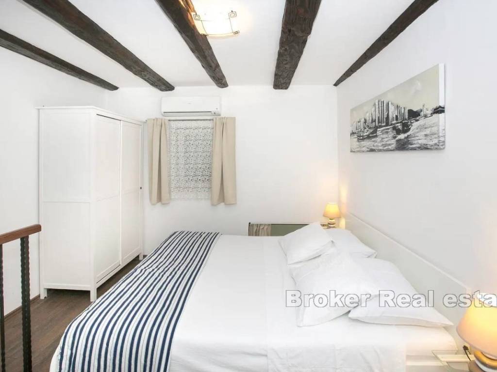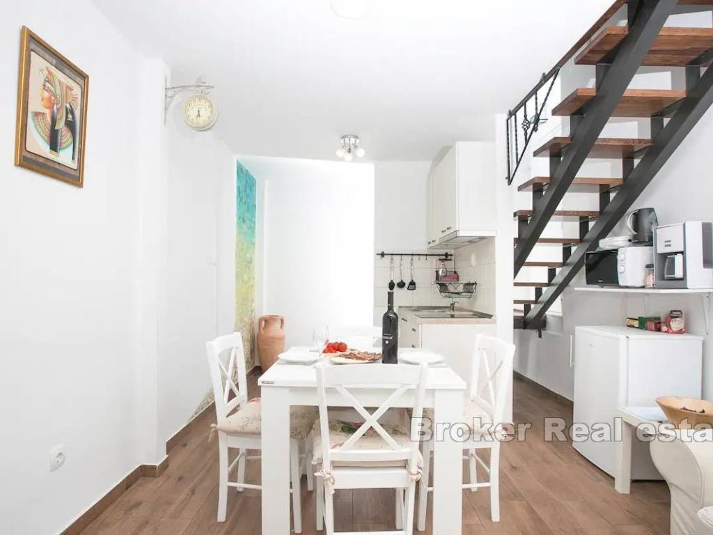 Za najam, šarmantan stan u neposrednoj blizini samog centra grada Splita. Smješten je u prizemlju kamene zgrade, te se prostire na 30m2. Stan se sastoji od prizemlja i prve etaže. Na prizemlju je smješten dnevni boravak s kuhinjom i blagovaonicom, dok je prva etaža rezervirana za spavaću sobu i kupatilo. Cijeli stan je održavan, te se ispred nekretnine nalazi javni parking. More se nalazi 360 metara od nekretnine, te se Dioklecijanova palača nalazi svega 150 metara od stana. Sav potreban sadržaj za svakodnevno življenje, od raznovrsnih trgovina, javnih ustanova, restorana je smješten u neposrednoj blizini nekretnine. Stan se ističe svojom mirnom lokacijom, a iako se nalazi u neposrednoj blizini centra grada, na mirnoj je lokaciji. Također u neposrednoj blizini nekretnine nalazi se glavna prometnica, koja povezuje sve dijelove grada Splita.