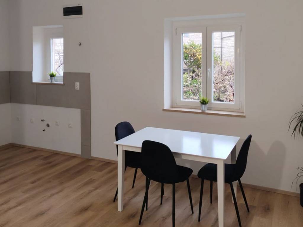 Novorenovirani apartman od 35 m2, položen na 1. katu manje zgrade koja se nalazi odmah uz more, plažu i neposrednoj blizini centra mjesta. Sastoji se od kuhinje s blagovaonicom i dnevnim boravkom, spavaćom sobom i kupaonicom. Apartman je djelomično namješten. Iako apartman nema dikretan pogled na more, sama blizina mora (10 metara od mora), plaže i svih potrebnih sadržaja koji se nalaze u neposrednoj blizini, čine ga idealnim i za stanovanje i za turizam.