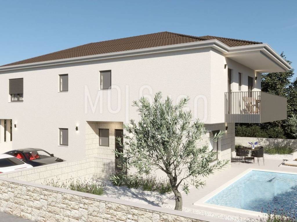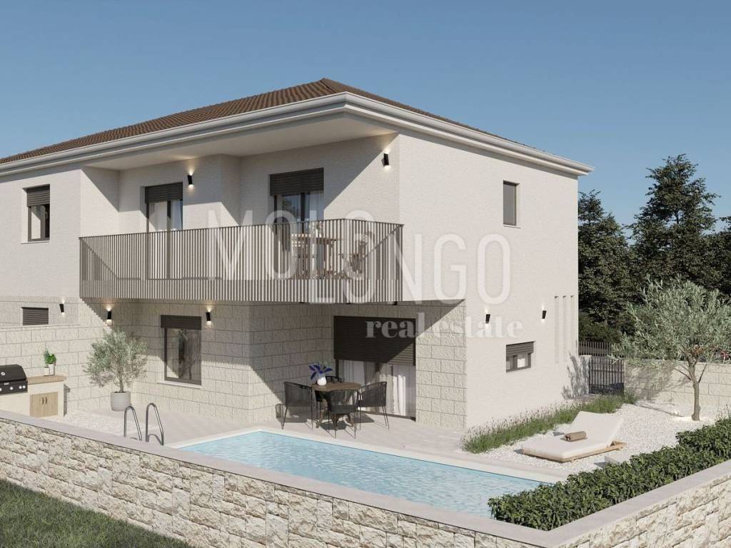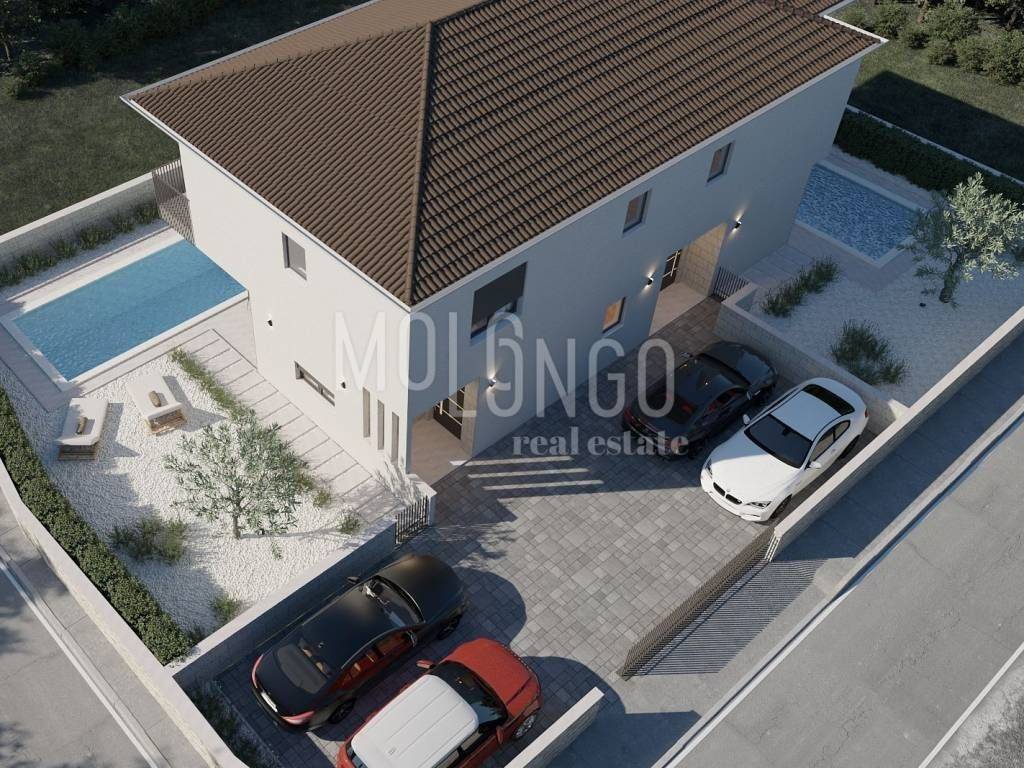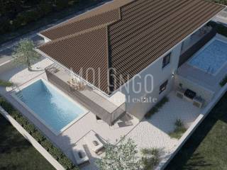 Luksuzna villa sastoji se od dnevnih prostorija, ostave, ulaznog hodnika, wc-a i natkrivenih terasa u prizemlju, te tri spavaće sobe, dvije kupaonice, predsoblja i natkrivene terase na prvome katu– savršeno rješenje za veću obitelj, prijatelje ili najam.