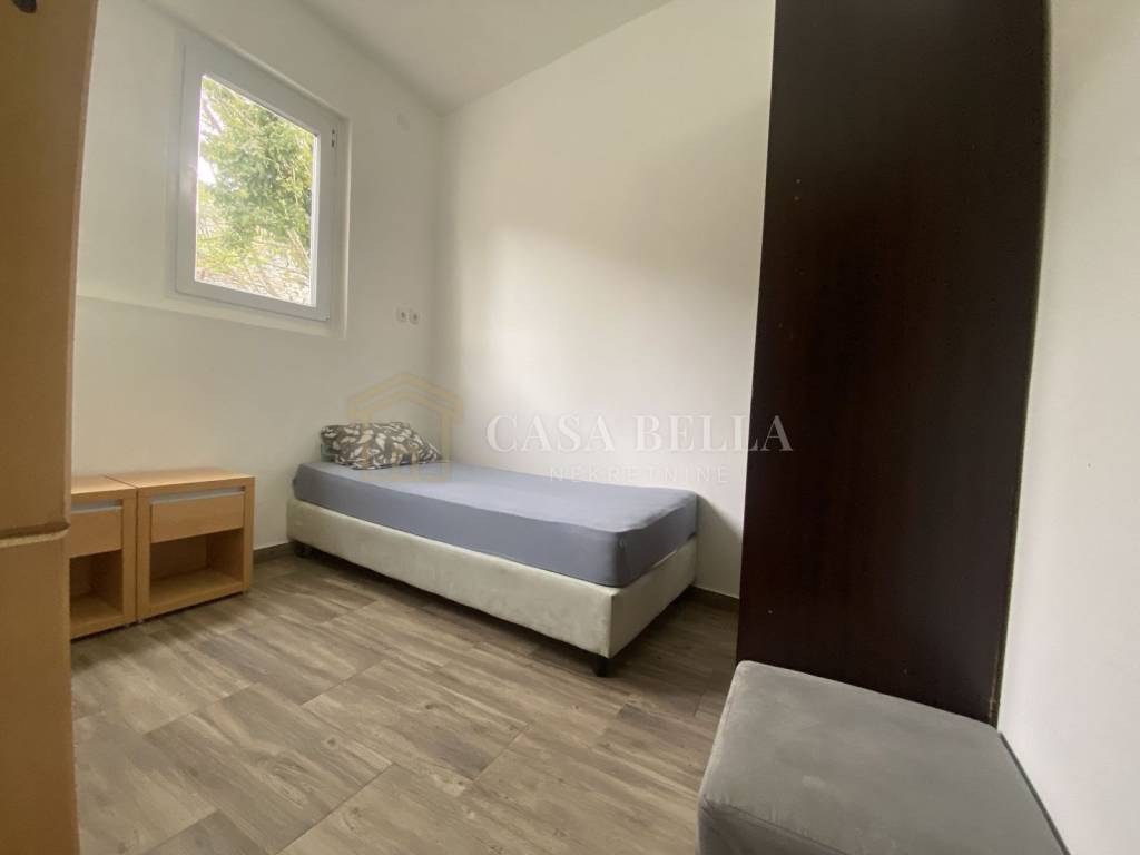 Sastoji se od hodnika,dvije spavaće sobe, kupaonice i kuhinje. Kapacitet stana je za 6 radnika. Cijena po radniku iznosi 250€ . U cijenu najma su uključene režije. Parking osiguran.