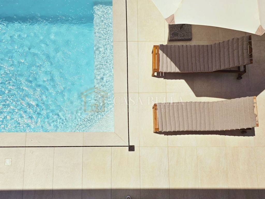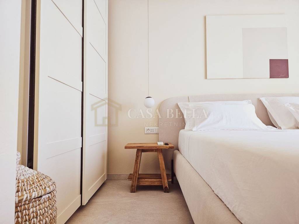 Vila je potpuno opremljena luksuznim namještajem, uglavnom od hrastovine, dok vanjski namještaj izrađen je od tikovine. Svaka soba, kao i dnevni boravak, opremljeni su Smart TV-om. Kuhinja je opremljena vrhunskim Bosch aparatima i izrađena po mjeri, dok je svo posuđe marke WMF i Villeroy & Boch. Dio kupaonskog namještaja također nosi potpis ove renomirane marke. Okućnica je uređena u mediteranskom stilu, s bazenom dužine 9 x 4 m koji blista tirkizno-plavom bojom, savršenim za osvježenje i uživanje.