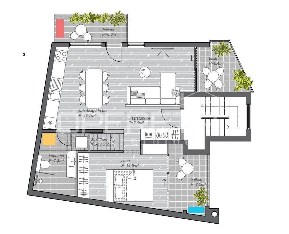 Tlocrt je iz idejnog projekta te je informativnog karaktera, moguća manja odstupanja prilikom završnog etažiranja.