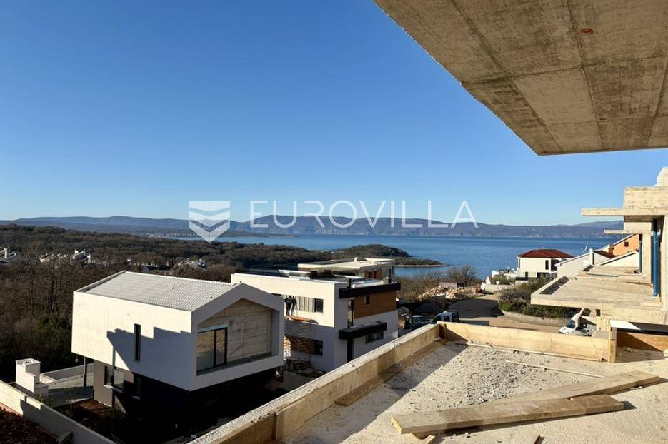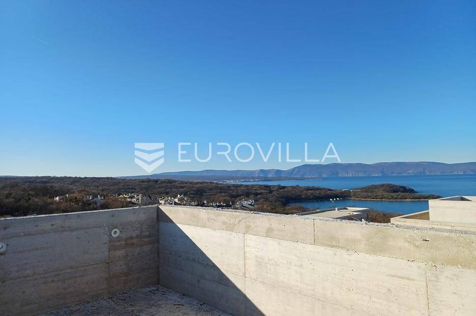 Krk, Njivice, trosoban stan površine 124.57m2 s krovnom terasom, bazenom i pogledom na more