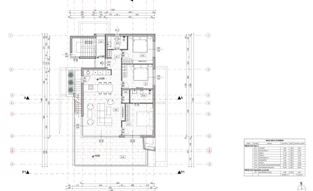 Krk, Njivice, prodaje se trosoban stan NKP 124.57m2 koji se sastoji od tri sobe, dnevnog dijela, 2 kupaone i terase na kojoj se nalazi krovni bazen.