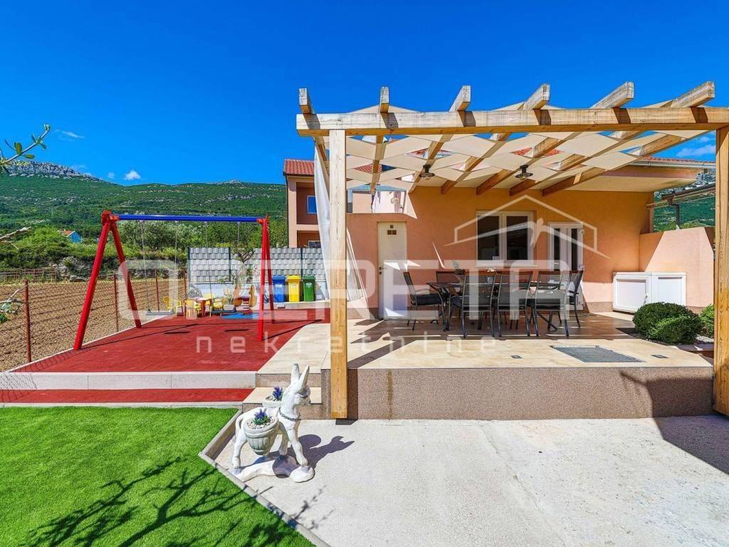 Vanjski prostor oblikovan je kao privatna mediteranska oaza s bazenom, uređenom hortikulturom i prostranim sunčalištem. Posebnu vrijednost daje pomoćni objekt površine 20 četvornih metara koji služi kao ljetna kuhinja s kaminom i natkrivenim prostorom za druženje, savršena za ljetna okupljanja i opuštanje uz dalmatinske specijalitete.