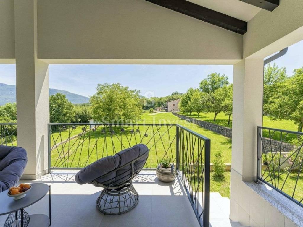 LABIN - RABAC Na prodaju je nova moderna samostojeća vila s privatnim bazenom i prekrasnim pogledom na planinu Učku, samo 7 km do plaže! Ova atraktivna i kvalitetno opremljena vila nalazi se u okolici Rapca i Labina, u mirnom naselju unutar općine Kršan. Okružena netaknutom prirodom – prostranim poljima, livadama i šumama – pruža idealno okruženje za opuštanje i uživanje u tišini daleko od gradske vreve. Uređeno dvorište nudi brojne sadržaje: privatni bazen dimenzija 4 x 8 m sa sunčalištem i ležaljkama, potpuno opremljenu ljetnu kuhinju s roštiljem te natkrivenu vanjsku blagovaonicu. Za najmlađe je tu i malo dječje igralište s ljuljačkom i toboganom. Vila nudi prekrasan panoramski pogled na planinu Učku i njen najviši vrh – Vojak, savršeno za ljubitelje prirode i planinarenja. Ljubitelji mora mogu uživati na plaži „Copacabana“, udaljenoj svega 7 km, dok su popularna ljetovališta poput Rapca udaljena 20-ak minuta autom. Svi osnovni sadržaji poput trgovine i restorana nalaze se u obližnjem Kršanu (2 km), dok se u povijesnoj jezgri Labina (12 km) nalazi poznata pizzerija „Rumore" kao i ostali izvrsni ugostiteljski objekti. Raspored prostorija (do 8 osoba): Ukupna površina: cca. 150 m², raspoređena na dvije etaže. U prizemlju se nalaze dvije klimatizirane spavaće sobe s bračnim krevetima i vlastitim kupaonicama (tuš/WC), obje s direktnim izlazom na terasu uz bazen. Na katu je prostrani dnevni boravak s blagovaonicom, kaminom, klimatizacijom i moderno opremljenom kuhinjom. Također, na katu su još dvije klimatizirane spavaće sobe s bračnim krevetima i dvije kupaonice (tuš/WC). Kvalitetna gradnja, atraktivna lokacija i odlična opremljenost čine ovu nekretninu idealnom za turistički najam i sigurnu investiciju, kao i velika natkrivena terasa s panoramskim pogledom. Kuća je pogodna i za stalno stanovanje i život u mirnoj zelenoj Istri nadomak mora. Vlasništvo uredno bez tereta, 1/1, privatna osoba. Građevinska i uporabna dozvola. Za više informacija i razgled nazovite +385/99/320-0011 ID KOD AGENCIJE: 15696 Danijela Urlić - PODRUČJE ISTRA Agent s licencom Mob: +385/(0)99/320-0011 E-mail: danijela.urlic@smart-invest.hr www.smart-invest.hr