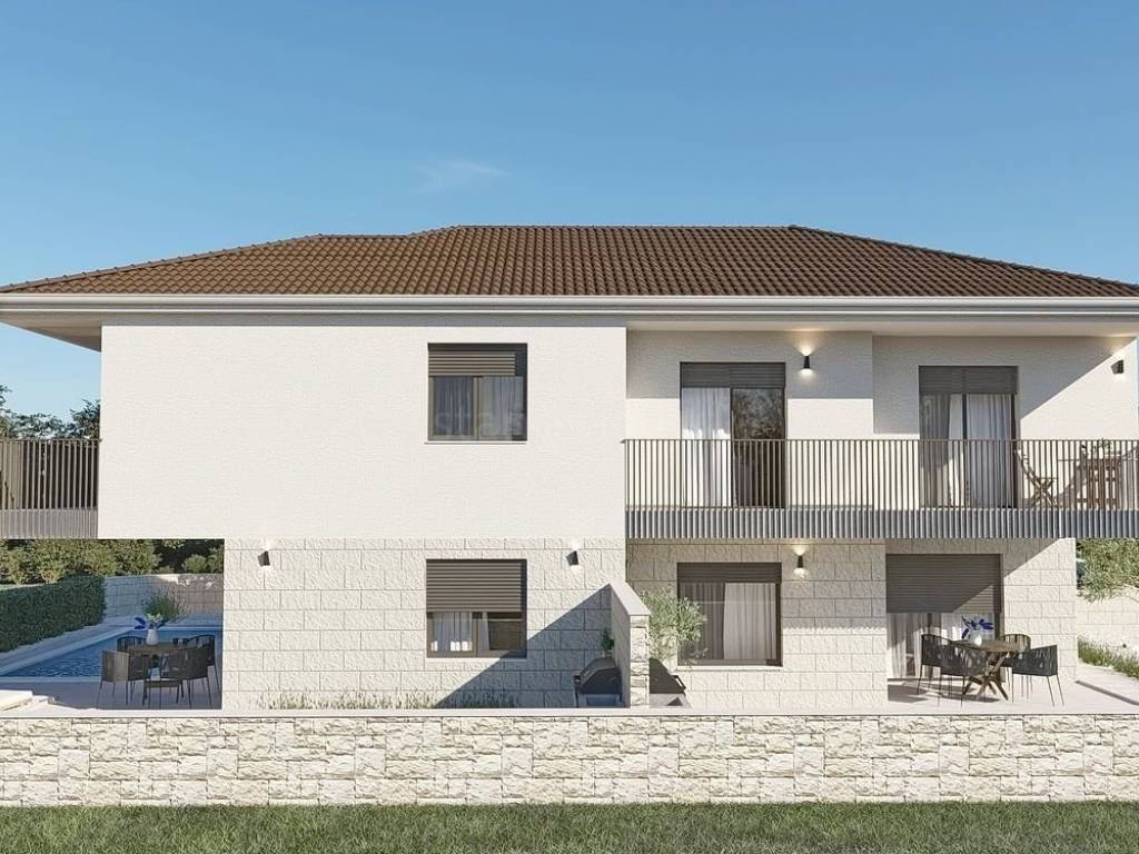 Okućnica površine 150 m2 četvornih metara dodatno obogaćuje ovu nekretninu. Uređena je s posebnom pažnjom i sadrži bazen veličine 21 četvorni metar s elektrolizom, dizalicom topline i sunčalištem. Također u sklopu okućnice smješten je i vanjski kameni tuš KORTA Design te prostor za ugradnju vanjske kuhinje s izvedenim dovodom hladne i tople vode, odvodom, strujom i rasvjetom. U gradnji su korišteni kvalitetni materijali, uključujući kamene ogradne zidove te kamene detalje na fasadi i oko kuće, čime je dodatno naglašen suvremeni mediteranski stil.