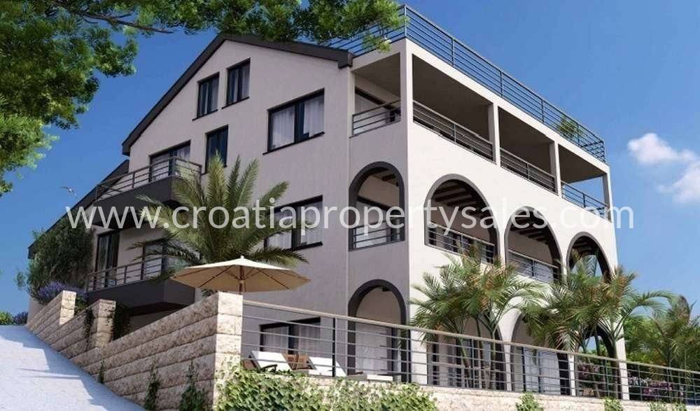 Apartmani na prekrasnoj lokaciji s panoramskim pogledom na more, nedaleko Trogira.Zgrada koja se sastoji od 9 apartmana s panoramskim pogledom na more, smještena u selu samo 10 minuta od Trogira. Završetak je predviđen za ljeto 2026.PRIZEMLJEApartman 1 u prizemlju nudi stambeni prostor od 44,58 m2 s jednom spavaćom sobom, jednom kupaonicom, dnevnim boravkom s kuhinjom i blagovaonicom te vrtom od 24,12 m2. Kupovna cijena: 160.000 EURApartman 2 - PRODANOApartman S1 u prizemlju ima 72,84 m2 stambenog prostora s dvije spavaće sobe, jednom kupaonicom, otvorenim dnevnim boravkom/blagovaonicom i kuhinjom te vrtom od 90,03 m2. Kupovna cijena: 275.000 EURApartman S2 u prizemlju nudi 66,21 m2 stambenog prostora s jednom spavaćom sobom, jednom kupaonicom, dnevnim boravkom, kuhinjom i blagovaonicom, terasom i vrtom od 60,14 m2. Kupovna cijena: 275.000 EURPRVI KATApartman S3 - PRODANOApartman S4 na prvom katu obuhvaća 75,35 m2 s dvije spavaće sobe, jednom kupaonicom, kuhinjom, dnevnim boravkom i blagovaonicom, terasom i balkonom. Kupovna cijena: 265.000 EURApartman A1 na prvom katu nudi 68,44 m2 stambenog prostora s jednom spavaćom sobom, jednom kupaonicom, dnevnim boravkom, kuhinjom i blagovaonicom te terasom. Kupovna cijena: 185.000 EURApartman A2 na prvom katu površine 48,91 m2 s jednom spavaćom sobom, jednom kupaonicom, dnevnim boravkom s kuhinjom i blagovaonicom, galerijom i lođom. Kupovna cijena: 175.000 EURPENTHOUSEPenthouse S5 na drugom katu (potkrovlje) površine 110,10 m2 s dvije spavaće sobe, jednom kupaonicom, dnevnim boravkom, kuhinjom i blagovaonicom, galerijom, terasom i balkonom. Kupovna cijena: 365.000 EURNekretnina je udaljena 10 minuta hoda od prekrasne plaže i kafića, te 1 km od supermarketa, sela i restorana.