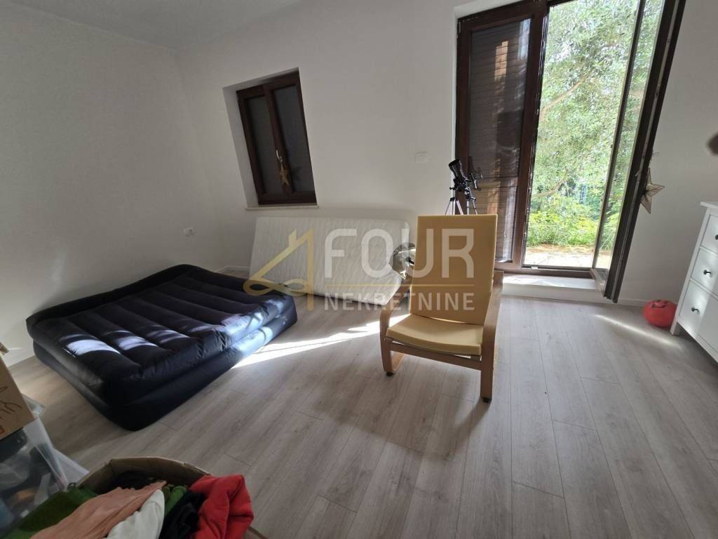 Stan u prizemlju je potpuno uređen i funkcionalan, s rasporedom 2S+DB, dok je prvi kat trenutačno u funkciji poslovnog prostora, no lako se može preurediti natrag u stambenu jedinicu.