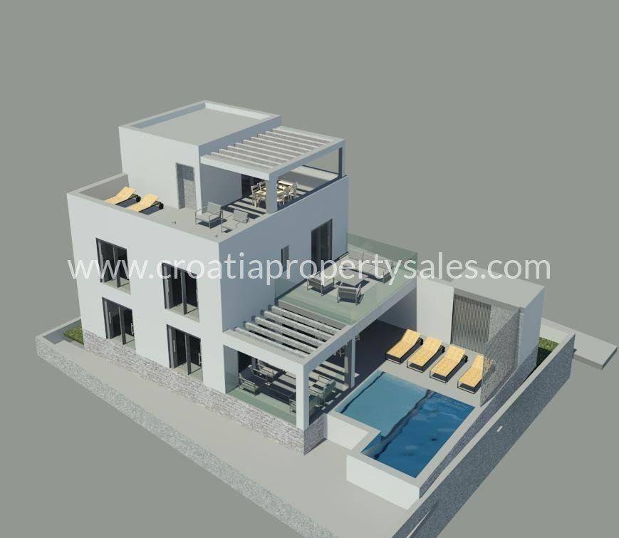 Posredujemo u prodaji ove kuće u Okrugu na Čiovu.Kuća se sastoji od 2 odvojene jedinice i ulaza, ali se prodaje kao samostojeća kuća. Jedan dio kuće je useljiv i može se koristiti, dok je drugi dio u roh-bau stanju.Vlasnik prodaje kuću s novom građevinskom dozvolom i projektom za preuređenje postojeće kuće u novu, modernu kuću.U trenutnoj fazi, kuća se sastoji od podruma, prizemlja i 1. kata, dok je nova dozvola odobrena za dodatni kat s ravnim krovom.Trenutno ima ukupno 5 spavaćih soba i 3 kupaonice, a svaka jedinica ima i kuhinju i dnevni boravak. Također, u podrumu se nalaze 2 garaže, po jedna za svaku jedinicu.S novom građevinskom dozvolom bilo bi moguće izgraditi kuću s jednom stambenom jedinicom koja može imati ukupno 4 kata, maksimalne visine 10,45 m, i ravnim krovom.Osim toga, bilo bi moguće izgraditi i bazen.Ova kuća se nalazi u mirnom području, nedaleko od mora, i također u slijepoj ulica, tako da nema prometa ispred kuće.U trenutnoj fazi, ova kuća ima samo djelomičan pogled na more s gornjeg balkona, ali rekonstrukcijom bi se dobio još jedan kat, što bi otvorilo mogućnost lijepog pogleda na more.Vlasništvo nad kućom je uredno, a trenutna građevinska dozvola vrijedi do studenog 2026. i može se produžiti za dodatne 3 godine ako gradnja ne započne do tada.
