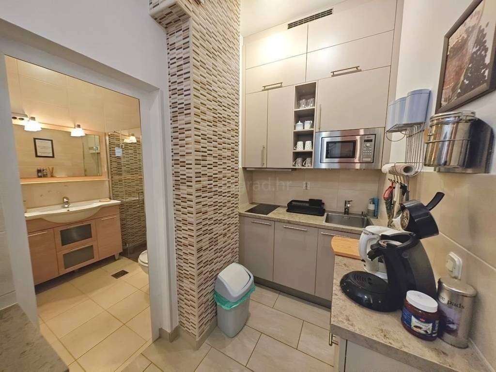 Ukupna površina apartmana iznosi 50 četvornih metara. Prostor uključuje zatvoreni predprostor u funkciji verande, iz kojeg se ulazi u dnevni boravak s kuhinjom. Apartman ima jednu spavaću sobu i kupaonicu. Interijer je vrlo dobro očuvan, potpuno opremljen svim potrebnim uređajima i kvalitetnim namještajem, što omogućuje trenutačno korištenje bez dodatnih ulaganja. Apartman ima dva ulaza, što dodatno doprinosi njegovoj funkcionalnosti.