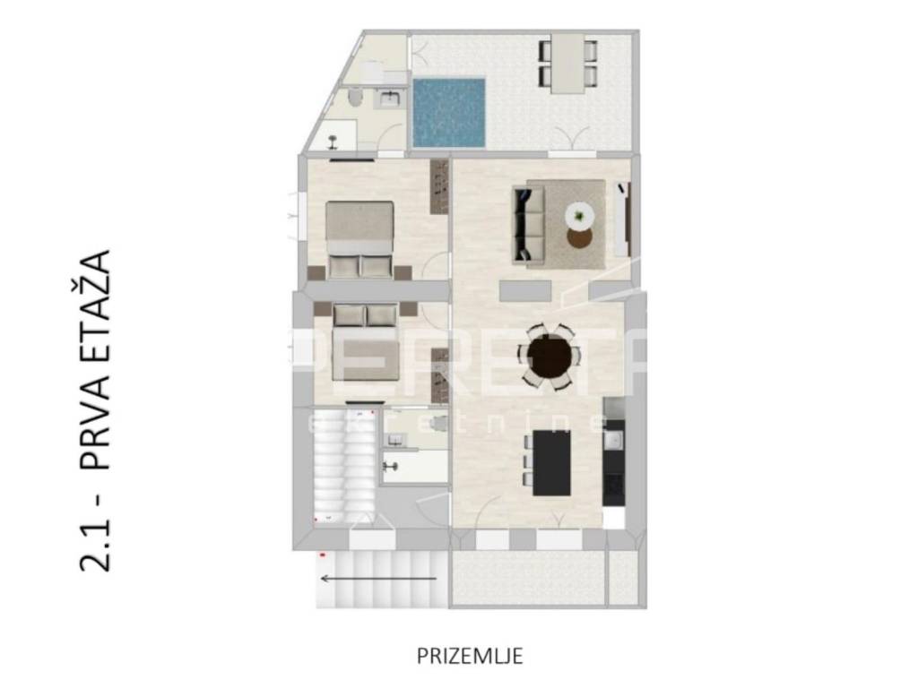 Alternativno, moguće je urediti dvije potpuno odvojene stambene jedinice – idealno za kombinaciju privatnog stanovanja i najma.