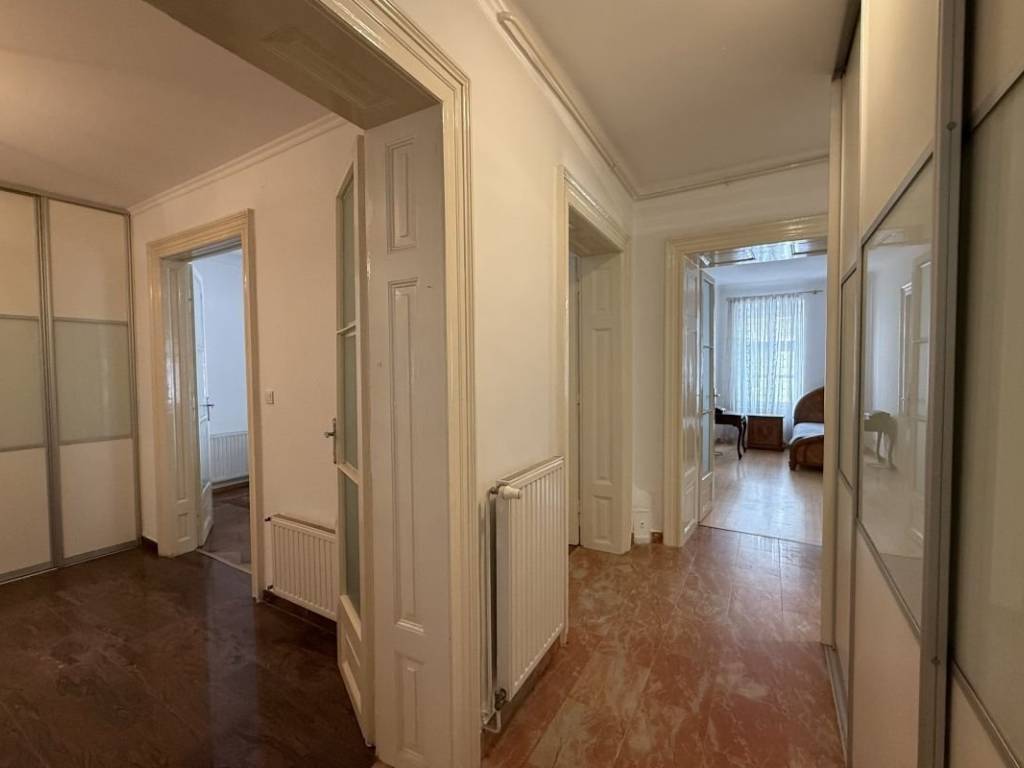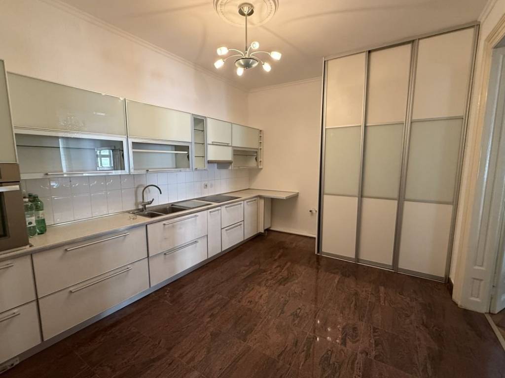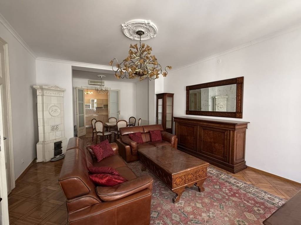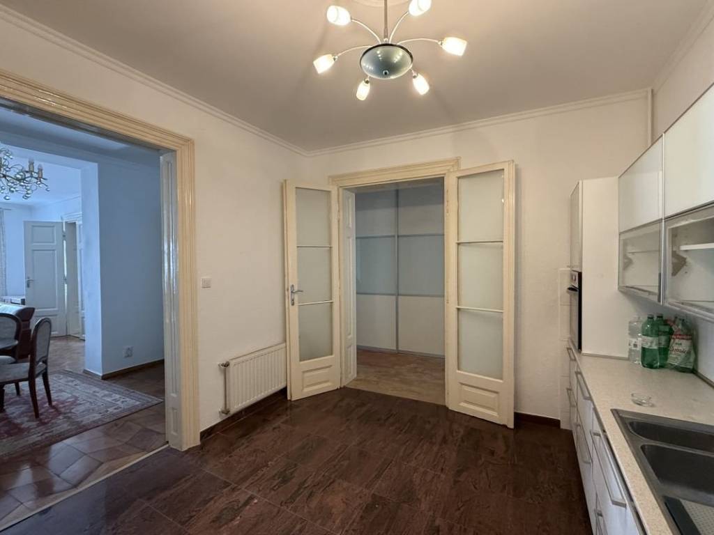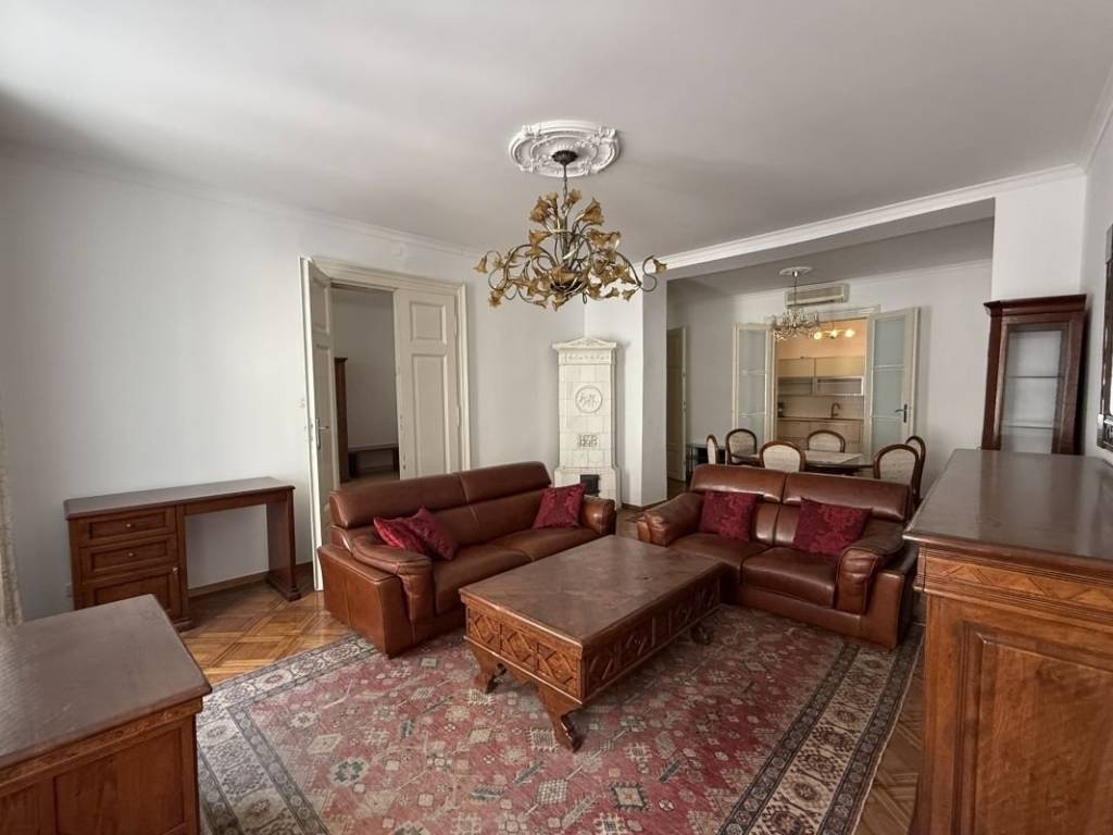 Antikno namješten prostani stan u samom centru grada, svega minutu šetnje od Trga Bana Josipa Jelačića. Stan se nalazi na prvom katu zgrade, sa ukupno 125 m2 stambenog prostora. Sastoji se od ulaznog hodnika koji u formatu slova L spaja sve prostorije stana. Na samom ulazu iz hodnika pristupa se prostranoj kuhinji koja se dalje proteže na blagovaonicu i dnevnu sobu. Iz dnevnog boravka nudi se opcija ulaza u prostranu spavaću sobu. Hodnik vodi do druge spavaće sobe i kupaonice sa tušem i kadom.