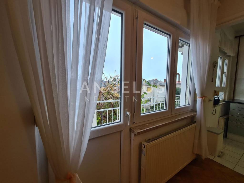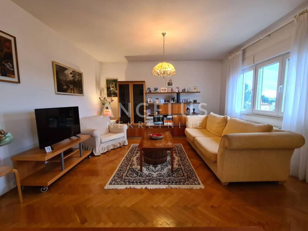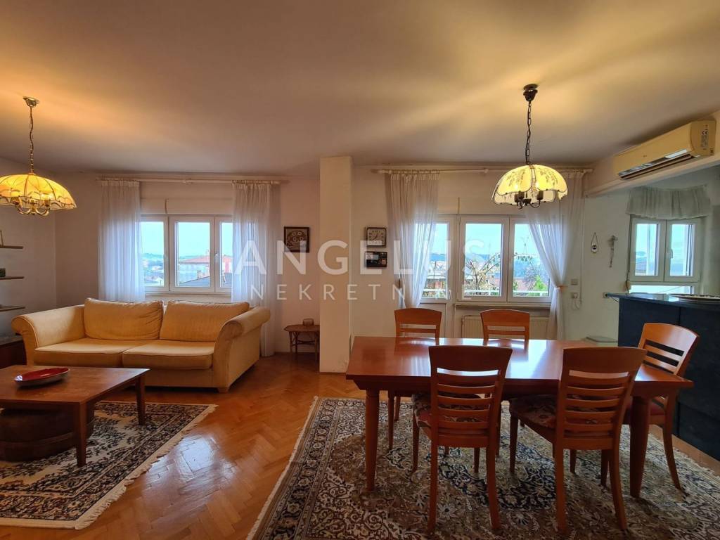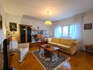 DESCRIPTION: It is a spacious and extremely bright apartment oriented to the south, located on the high 1st floor of a smaller building, of quality construction, built in 1974. The apartment has a total living area of 99.60 m2 and consists of four bedrooms, three of which are larger while the fourth is smaller (currently used as an office and storage room), two bathrooms, a large living room, dining room and kitchen in an open space concept and two spacious terraces on the front side (exit from the living room) and on the back side of the building with a total area of an additional 30 m2. The apartment also has a functional garage of an additional 18 m2 and a storage room/basement of 12 m2 on the ground floor of the building, as well as a small garden of 40 m2 that can be used for planting crops. The apartment is accessed by private stairs from the outside of the building.