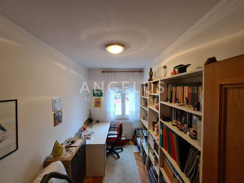 OPIS: Riječ je o prostranom i izrazito svijetlom stanu orijentiranom na jug koji se nalazi na visokom 1. katu u sklopu manje zgrade, kvalitetne gradnje, izgrađene 1974. godine. Stan je ukupne stambene površine 99.60 m2 i sastoji od četiri spavaće sobe, od koje su tri veće dok je četvrta manja (trenutno se koristi kao ured i spremište), dva kupatila, velikog dnevnog boravka, blagovaonice i kuhinje u konceptu otvorenog prostora te dvije prostrane terase sa prednje strane (izlaz iz dnevnog boravka) i sa zadnje strane objekta ukupne površine dodatnih 30 m2. Stanu također pripada funkcionalna garaža dodatne površine 18 m2 i ostava/podrum površine 12 m2 u prizemlju zgrade kao i maleni vrt 40 m2 koji se može koristiti za sadnju agrokultura. Stanu se pristupa privatnim stepenica s vanjske strane objekta.