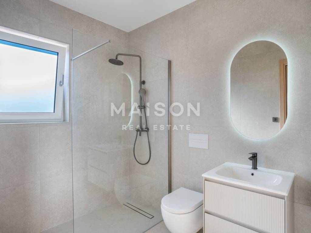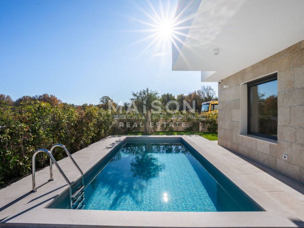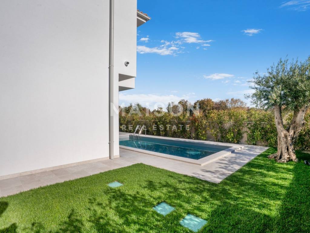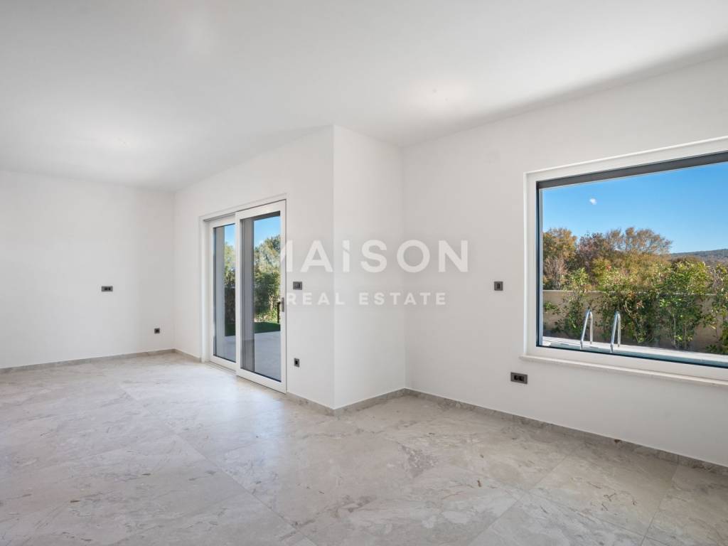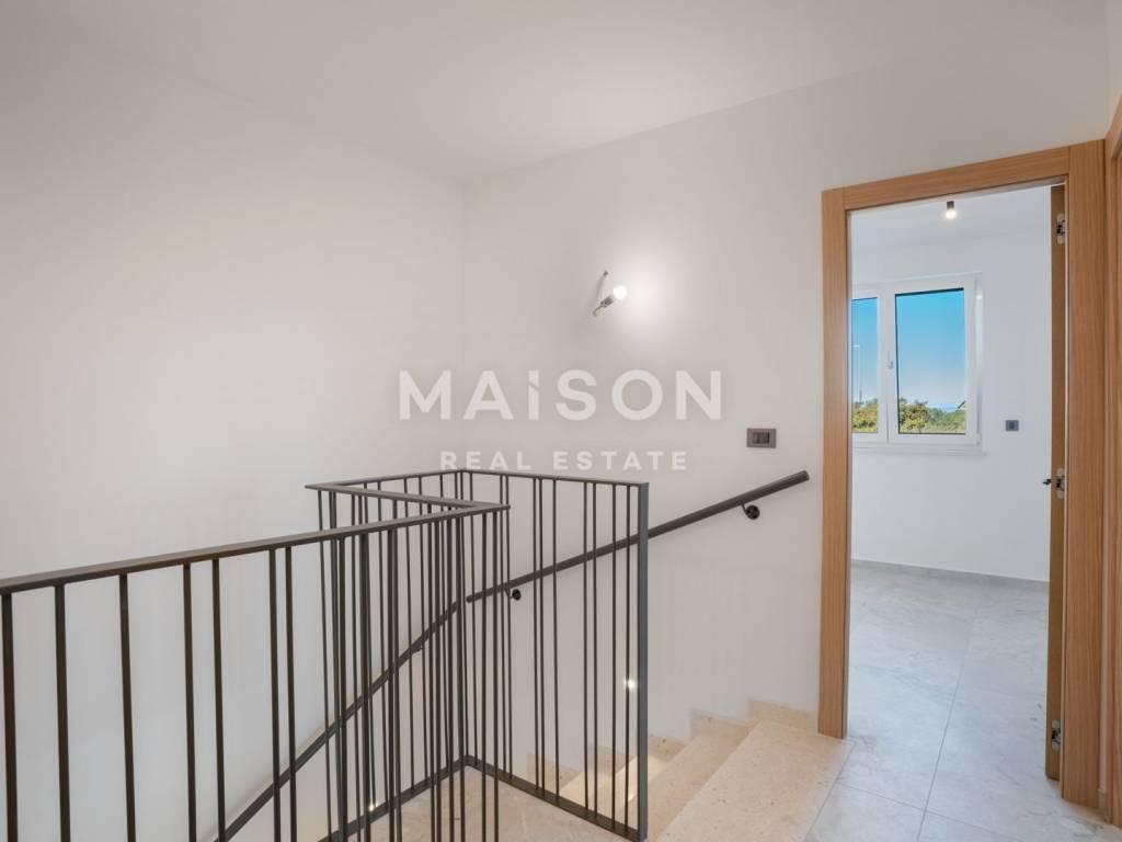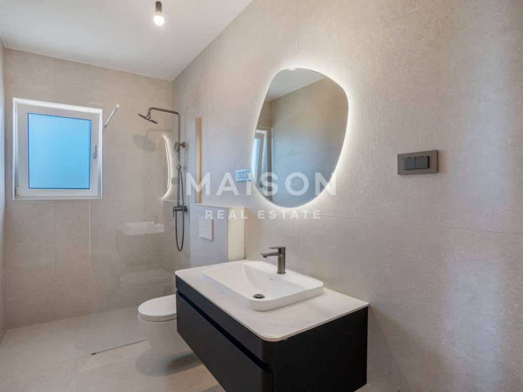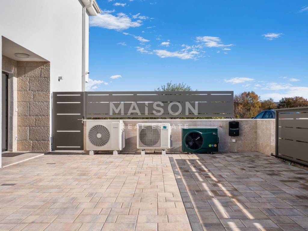 Kuća se prostire na dvije etaže i sastoji se od ukupno tri spavaće sobe, dvije kupaonice i dodatnog toaleta, kao i prostranog dnevnog boravka. U uređenoj okućnici nalazi se bazen s elektrolizom i dizalicom topline, a cijeli prostor odiše mediteranskim ugođajem – zahvaljujući kamenim ogradnim zidovima, kamenim detaljima na fasadi i pažljivo osmišljenoj hortikulturi s autohtonim biljem, futinijama i stoljetnim maslinama starim čak 300 godina. Nekretnina je opremljena vrhunskim sustavom podnog grijanja na vodu s dizalicom topline renomirane marke Vaillant, dok je za hlađenje ugrađena inverter klimatizacija Toshiba. Korištena je kvalitetna PVC stolarija s troslojnim staklima, a rolete su na električno upravljanje. Također je predviđena priprema za video nadzor i alarmni sustav, što dodatno doprinosi osjećaju sigurnosti i udobnosti.