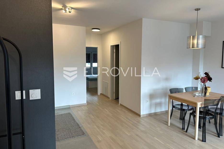 Rudeš, trosoban stan u novogradnji iz 2025. godine.Sastoji se od: ulaznog hodnika, dvije spavaće sobe, kupaonice, kuhinje s blagovaonicom i kuhinjom te nevnim boravkom i loggie.Jedna spavaća u potpunosti opremljena, druga ostavljena prazna za dječju sobu ili kućni ured.Stan ima puno prirodne svjetlosti i pogled na zelenilo, u potpunosti opremljen svim novim elementima ,plinsko podno grijanje i klima uređaj.Pripada mu garažno parkirno mjesto na -1 etaži.Odlična lokacija, blizina javnog prijevoza, trgovina, restorana, sportskih centara i drugih sadržaja.Ostale informacije ne upit.