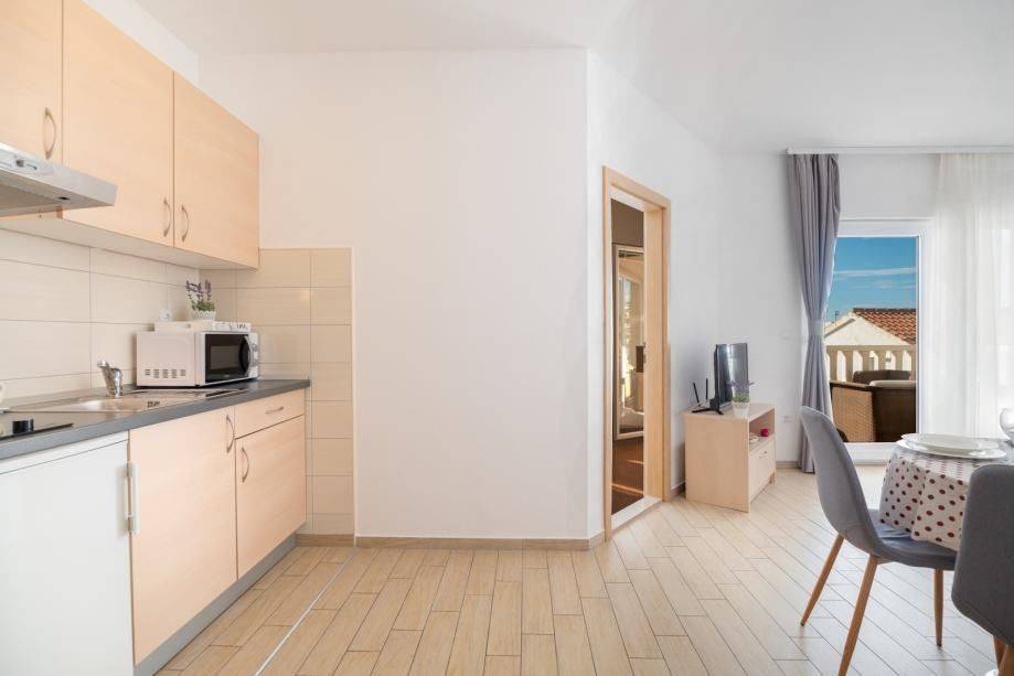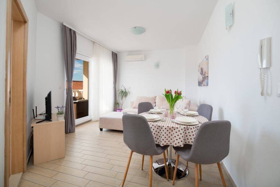 Kompletan prostor ima direktan pristup vanjskoj natkrivenoj terasi i vrtu s roštiljem kao idealno mjesto tijekom ljetnih mjeseci.