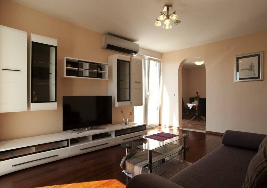 Sastoji se od dvije velike sobe, velikog dnevnog boravka, odvojena velika kuhinja ,dva wc-a, jedan veliki wc sa tuš kabinom, i jedan mali wc, prostor za spremu. Stan je izuzetno velik i komforan, nije potrebno nikakvo ulaganje jer je renoviran. Ima prekrasan pogled na cijeli Split.