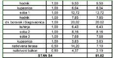 Stan S4 ima ukupnu neto površinu od 82 m2 te nudi prostrani i funkcionalni raspored. Smješten je na prvom katu zgrade i orijentiran na jug. Sastoji se od dvije udobne spavaće sobe, dvije moderno uređene kupaonice, prostrane kuhinje s blagovaonicom i dnevnog boravka koji izlazi na prekrivenu terasu površine 14,80 m2, idealan za opuštanje i uživanje u pogledu na okolni krajolik. U cijenu su uključeno i parking mjesto u garaži.