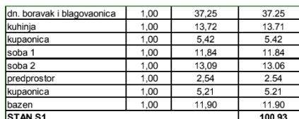 Stan S1 ima ukupnu neto površinu od 100 m2 te nudi prostrani i funkcionalni raspored. Smješten je na prizemlju zgrade i orijentiran na jug. Sastoji se od dvije udobne spavaće sobe, dvije moderno uređene kupaonice, prostrane kuhinje s blagovaonicom i dnevnog boravka koji izlazi na balkon površine 14,80 m2, idealan za opuštanje i uživanje u pogledu na okolni krajolik. U cijenu su uključeno i parking mjesto u garaži.