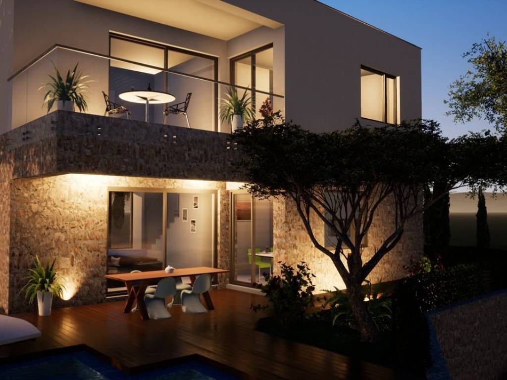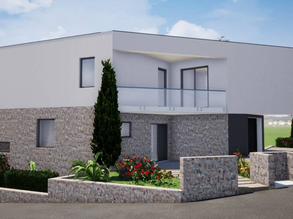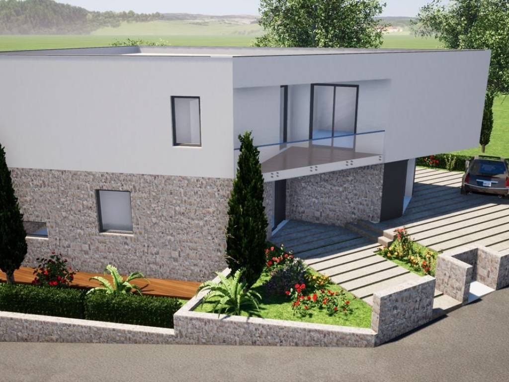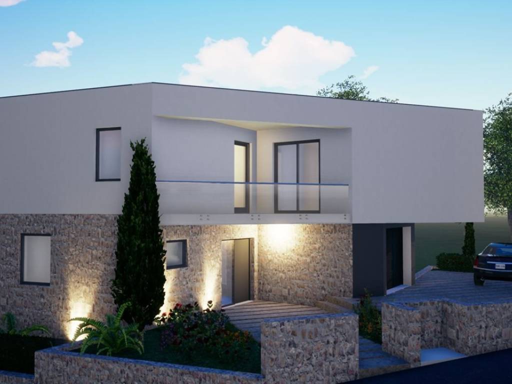 Vila je na 3 etaže, ima podrum, prizemlje i kat sa razlikama u visini što joj daje na otmjenosti a ima i garažu kao i vanjska parkirna mjesta pored kojih je vrt uređen sa maslinama i travom (automatko navodnjavanje).
