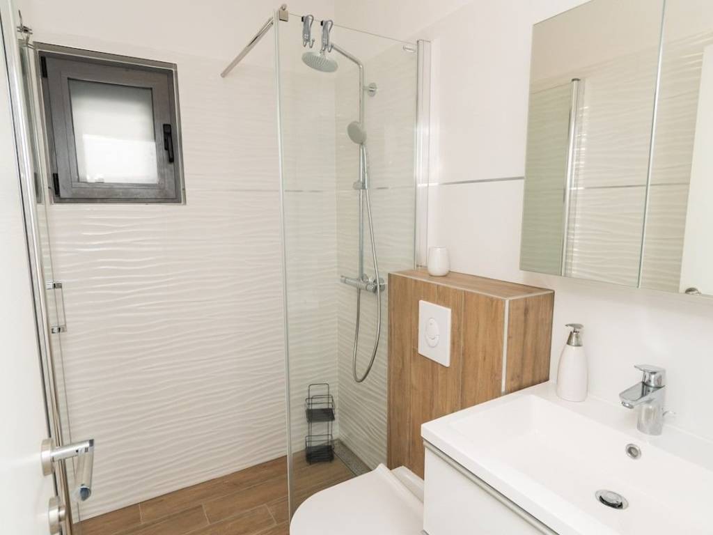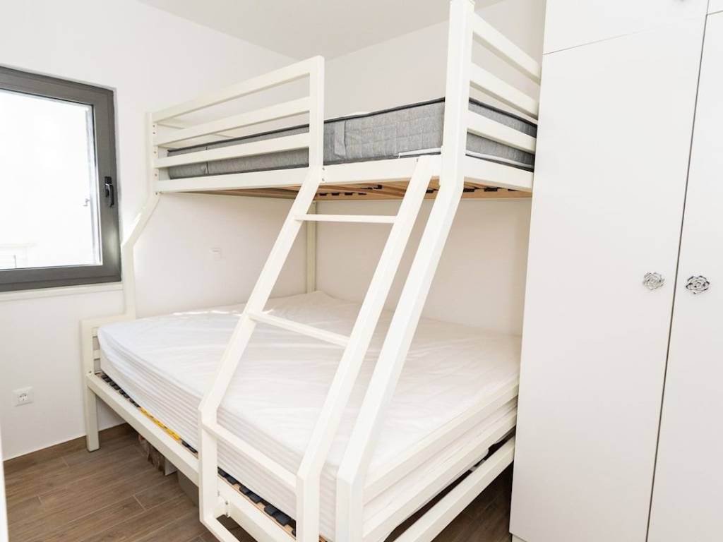 Sve prostorije su namještene novim namještajem. S drugog i trećeg kata pruža se otvoren pogled na more. Kući također pipadaju i tri vanjska parkirna mjesta koja se nalazi s sjeverne strane objekta.