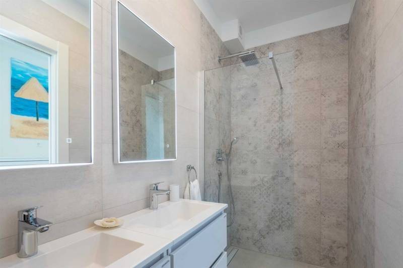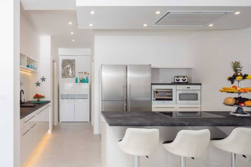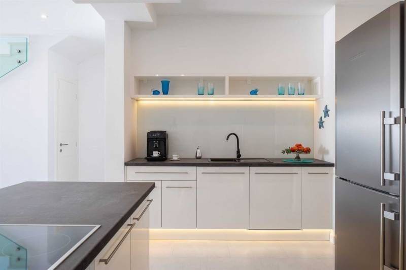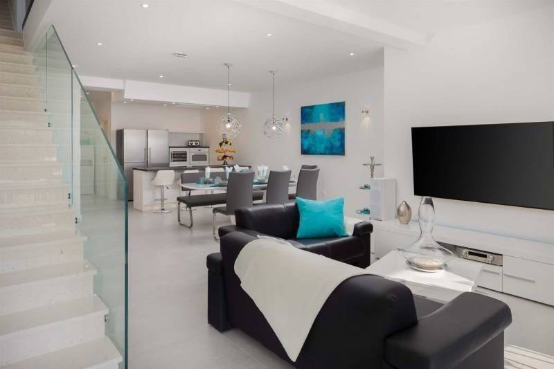 Grijani bazen izvrsno je mjesto gdje možete uživati u svježe pripremljenim koktelima na baru na terasi ili gledati omiljenu TV emisiju dok uživate u nježnoj masaži mlaznica u bazenu. S terase se ulazi u dnevni dio otvorenog koncepta. Sastoji se od dnevnog boravka i potpuno opremljene kuhinje. Ovaj je prostor idealan ako se tijekom dana želite skloniti od iscrpljujuće vrućine. Dnevni boravak ima dva udobna dvosjeda te mali bar u kojem si možete pripremiti piće i uživati u omiljenoj TV emisiji ili slušati omiljenu glazbu na kućnom Marantz prijemniku.