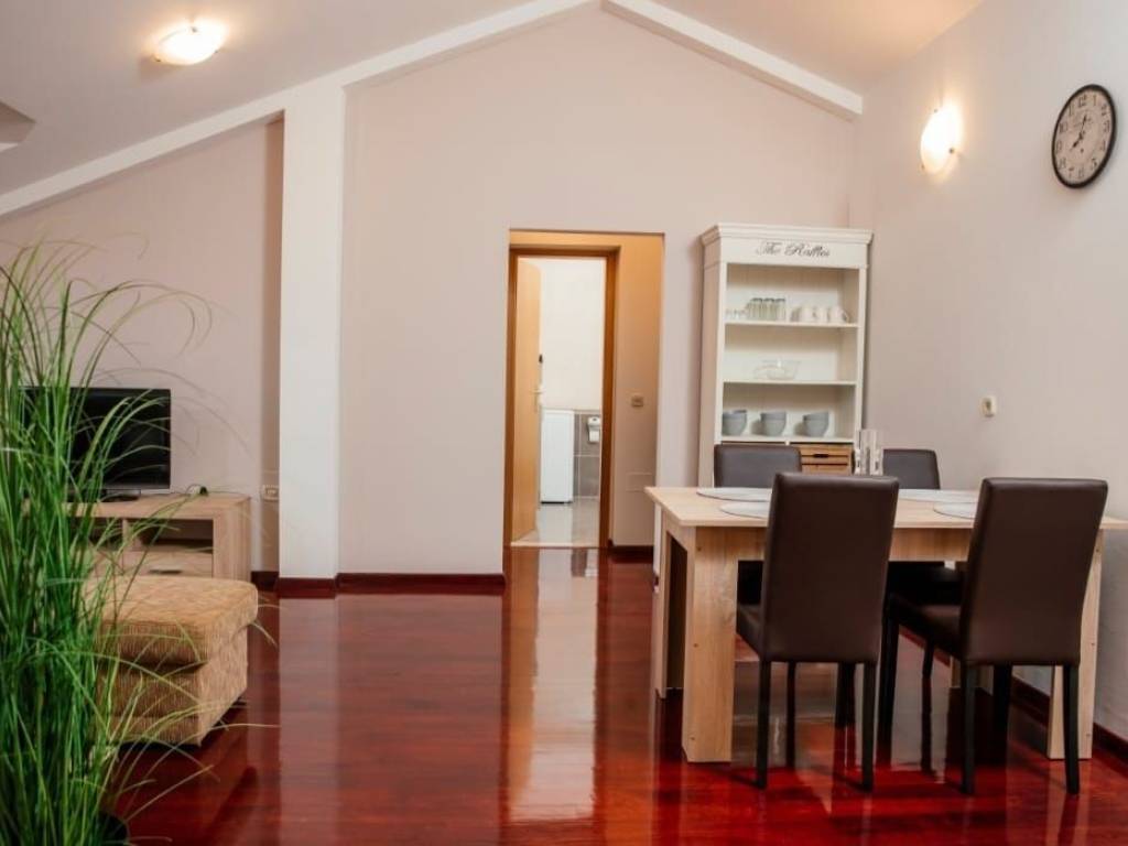 Prvi kat sadrži 4 spavaće sobe, dok na potkrovlju imamo dva apartmana.