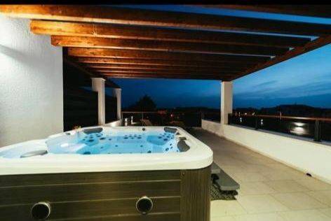 Na slijedećoj - (trećoj) razini je 'ljetna' kuhinja na uvučenom katu, iz te kuhinje je izlaz na prostranu terasu, na koju su smješteni jacuzzi kada, u sunčalište, te sa stražnje strane, kameni roštilj s mjestima za sjedenje.