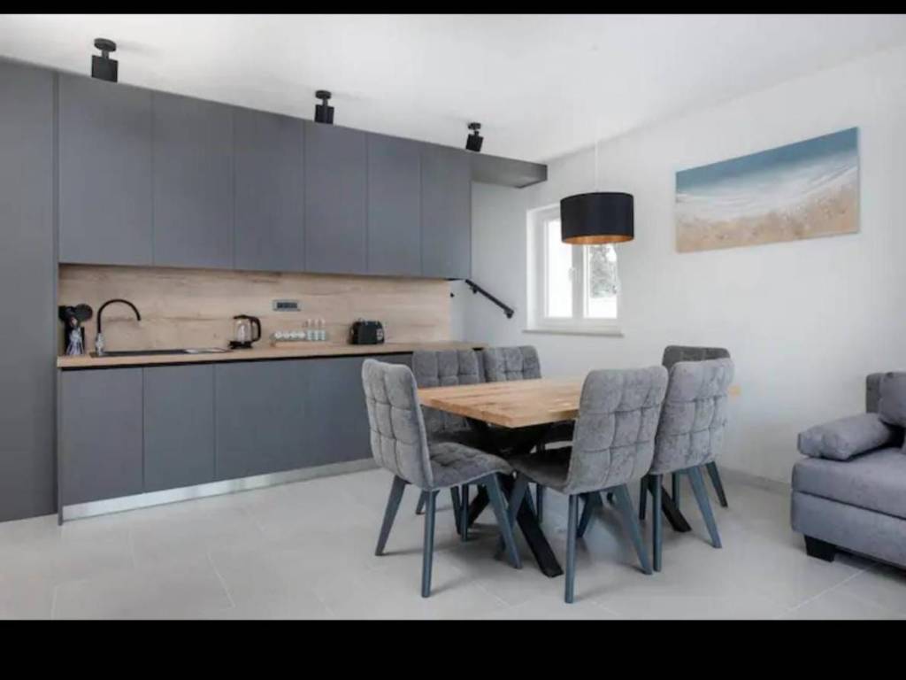 Prostor U prizemlju se nalazi dnevni boravak i blagovaonica s potpuno opremljenom kuhinjom, stolom za objedovanje za 6 osoba, kaučem i TV-om sa satelitskim programima. U prizemlju se nalazi i jedna spavaća soba s vlastitom kupaonicom i izlazom na terasu i bazen. Na prvom katu se nalaze 2 spavaće sobe s vlastitom kupaonicom (jedna s tuš kabinom i jedna s kadom) Vanjski bazen s ležaljkama i fantastičnim pogledom na more. U neposrednoj blizini se nalazi vanjska blagovaonica za 6 osoba, vanjski roštilj, igralište za djecu i okolno područje borove šume idealno za planinarenje i uživanje u tipičnom dalmatinskom krajoliku.