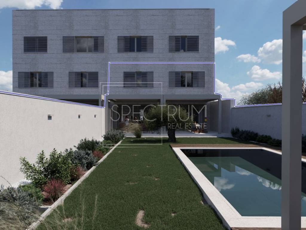 Sa terase u prizemlju se dolazi do bazena površine 15 m2. Bazen sa sunčalištem predstavlja idealan prostor za uživanje u toplim ljetnim mjesecima. Stanu pripada i ograđeno dvorište površine 149 m2.