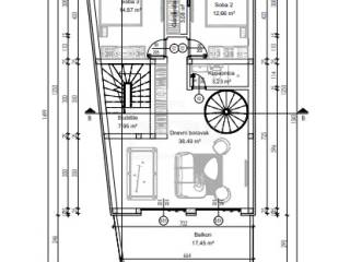Stan se proteže kroz prizemlje i 1.kat novoizgrađene stambene zgrade. Površina stambenog prostora iznosi 140.75 m2. U prizemlju se nalazi dnevni boravak sa kuhinjom i blagovaonicom open space koncepta, spavaća soba i 2 kupaonice. Iz dnevnog boravka se izlazi na prostranu terasu površine 24.81 m2. Unutarnjim stepenicama se dolazi do kata gdje se nalazi još jedan prostrani dnevni boravak, 2 spavaće sobe, garderobna prostorija, kupaonica i hodnik. Iz dnevnog boravka se izlazi na natkrivenu terasu površine 17.45 m2.