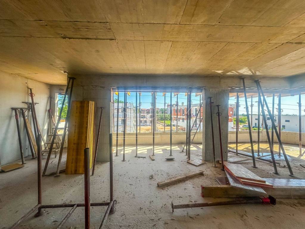 Stan se nalazi na 2.katu novoizgrađene stambene zgrade. Površina stana iznosi 121.91 m2. Stan se sastoji od open space dnevnog boravka sa kuhinjom i blagovaonicom, 3 spavaće sobe, 2 kupaonice, hodnika, saune, terase i loggie. Iz stana se pruža pogled na prirodu i na more. Stan se grije putem podnog grijanja na dizalicu topline te klima uređaja. Zbog svoje veličine, stan pruža udobnost i komfor. Stan se gradi vrlo kvalitetnim materijalima, od podova, sanitarija, ALU stolarije, protuprovalnih vrata. Zgrada ima i lift te nadzorne kamere. U vlasništvu stana je i parkirno mjesto sa električnim priključkom za punjenje električnih vozila.