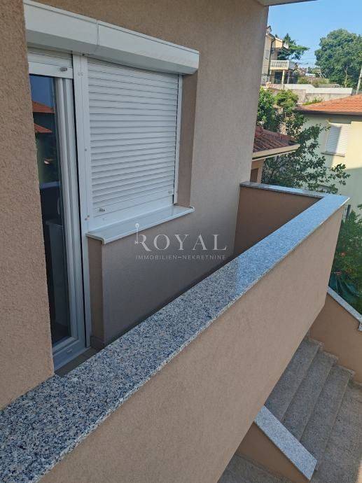 Svaka soba ima vlastiti balkon, a stan dodatno raspolaže i s velikom terasom – idealnom za opuštanje ili obiteljska druženja.