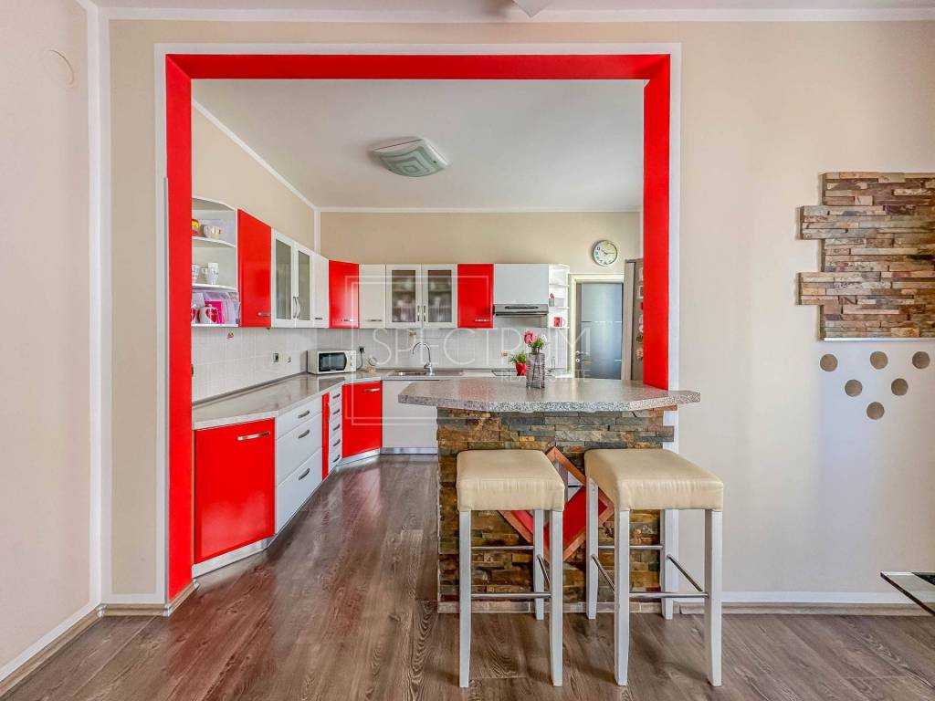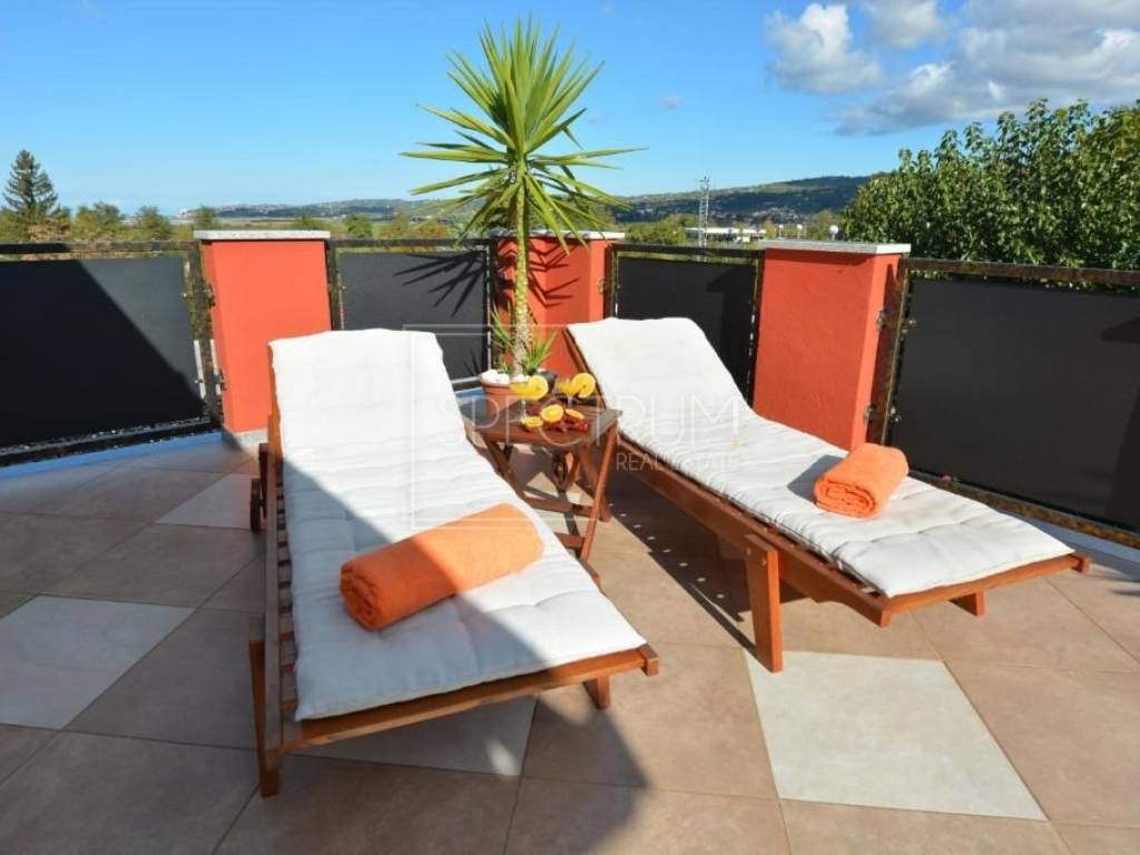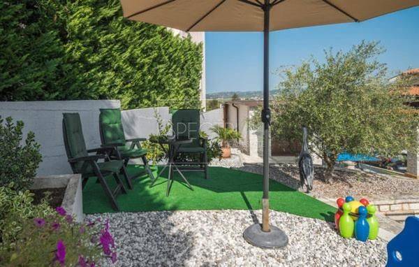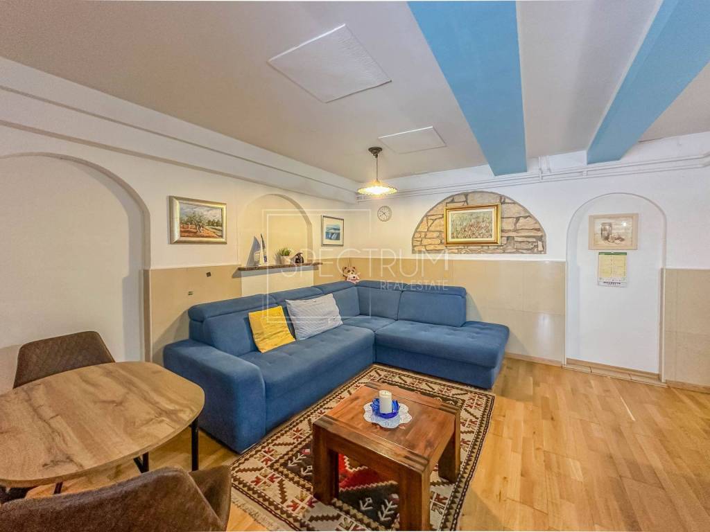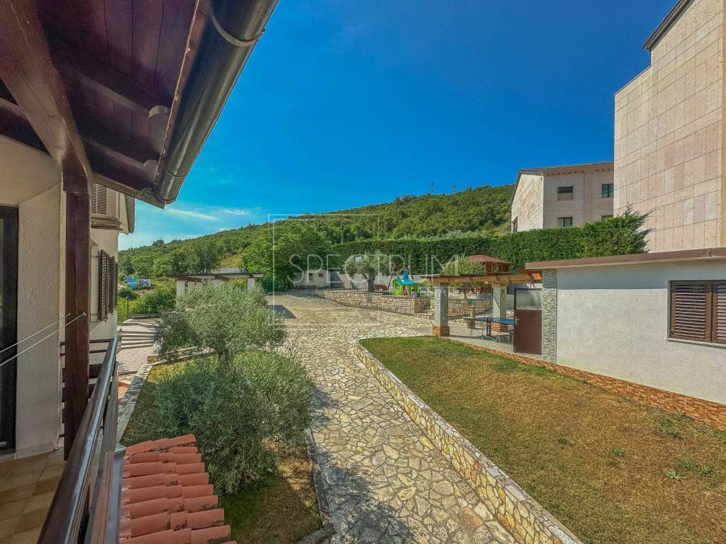 Druga kuća je apartmanska kuća, a proteže se kroz prizemlje, 1.kat i potkrovlje. Kuća se sastoji od 3 prostrana stana, svaki na jednoj etaži. Prvi stan se nalazi u prizemlju i sastoji se od blagovaonice, kuhinje, dnevnog boravka, spavaće sobe i kupaonice. Taj stan u prizemlju je upisan kao poslovni prostor, što novom vlasniku pruža razne mogućnosti. Drugi stan je smješten na 1. katu. Taj stan se sastoji od dnevnog boravka sa kuhinjom i blagovaonicom open space koncepta, 3 spavaće sobe, kupaonice, wc-a, ostave, hodnika i prostrane natkrivene terase. Na terasu se izlazi iz dnevnog boravka, a sa terase se pruža otvoreni pogled na more i na prirodu. Treći stan smješten je u potkrovlju. Taj stan se sastoji od dnevnog boravka sa kuhinjom i blagovaonicom, 2 spavaće sobe, kupaonice, wc-a i hodnika. Iz stana se pruža predivan pogled na more.