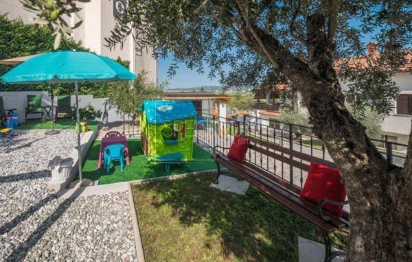 Prva kuća je predivna kamena renovirana istarska kuća s bazenom. Kuća se prostire na prizemlje i kat. U prizemlju se nalazi prostrani dnevni boravak, kuhinju s blagovaonicom i wc. Unutarnjim stepenicama dolazi se do kata gdje se nalaze 3 spavaće sobe, kupaonica i prostrana terasa. Pri renovaciji se pazilo da kuća zadrži autohtoni šarm, pa se u kući mogu vidjeti brojni kameni i drveni elementi, poput izvornih kamenih zidova, drvenih greda i sl. Ispred ulaza u kuću nalazi se prostrana natkrivena terasa, idealna za uživanje na otvorenome. Kuća ima i zasebnu odvojenu prostoriju za teretanu. Dvorište kuće je uređeno i ograđeno, a u sklopu dvorišta nalazi se bazen sa prostorom za sunčalište, kao i prostor za roštilj.