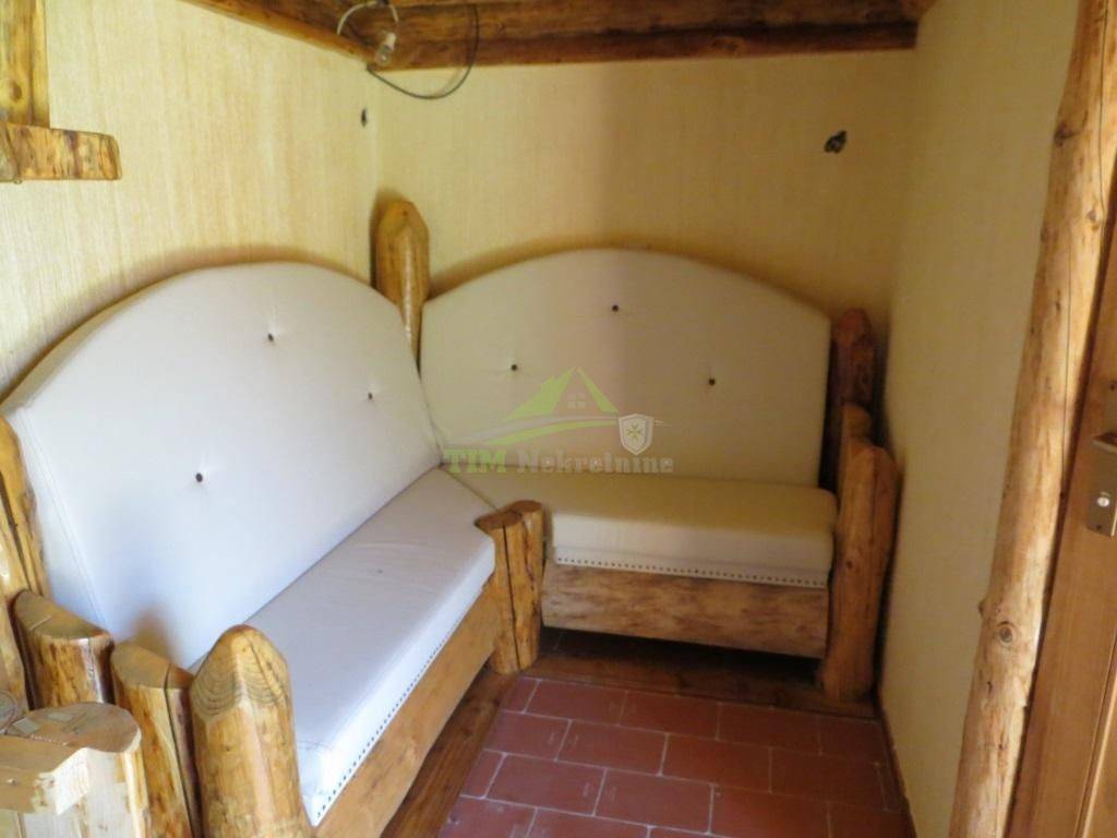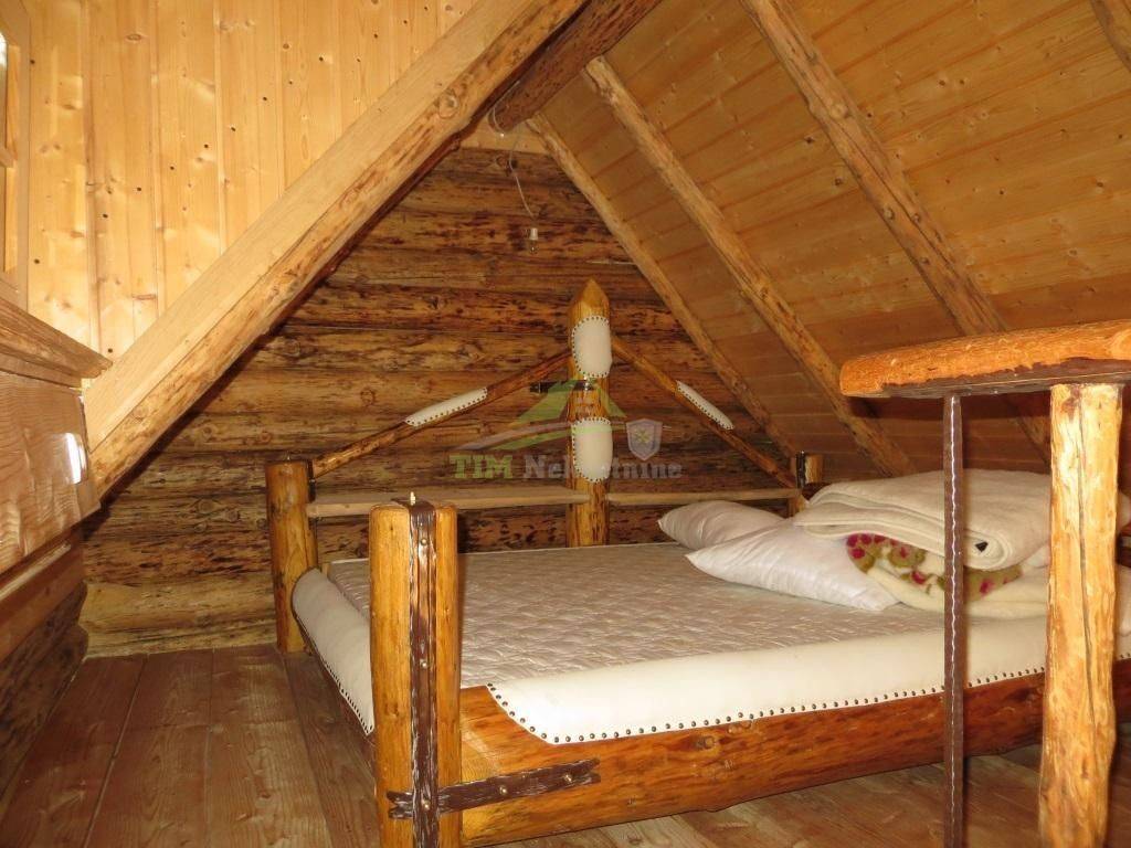 Kuća se sastoji od prizemlja i potkrovlja, kuća je kompletno izgrađena od trupaca, sa unikatnim, ručno rađenim namještajem od masivnog drva.