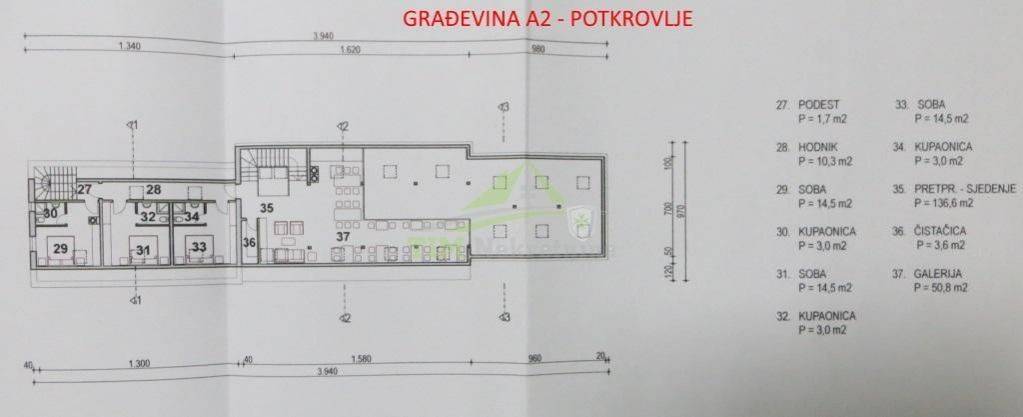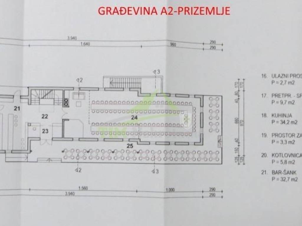 - A2 UGOSTITELJSKI OBJEKT ukupne površine 969.60 m2 (tri etaže; podrum-322.70 m2, prizemlje-312.40 m3, kat-286.70 m2)