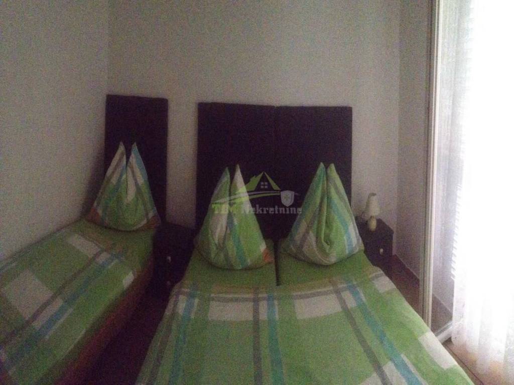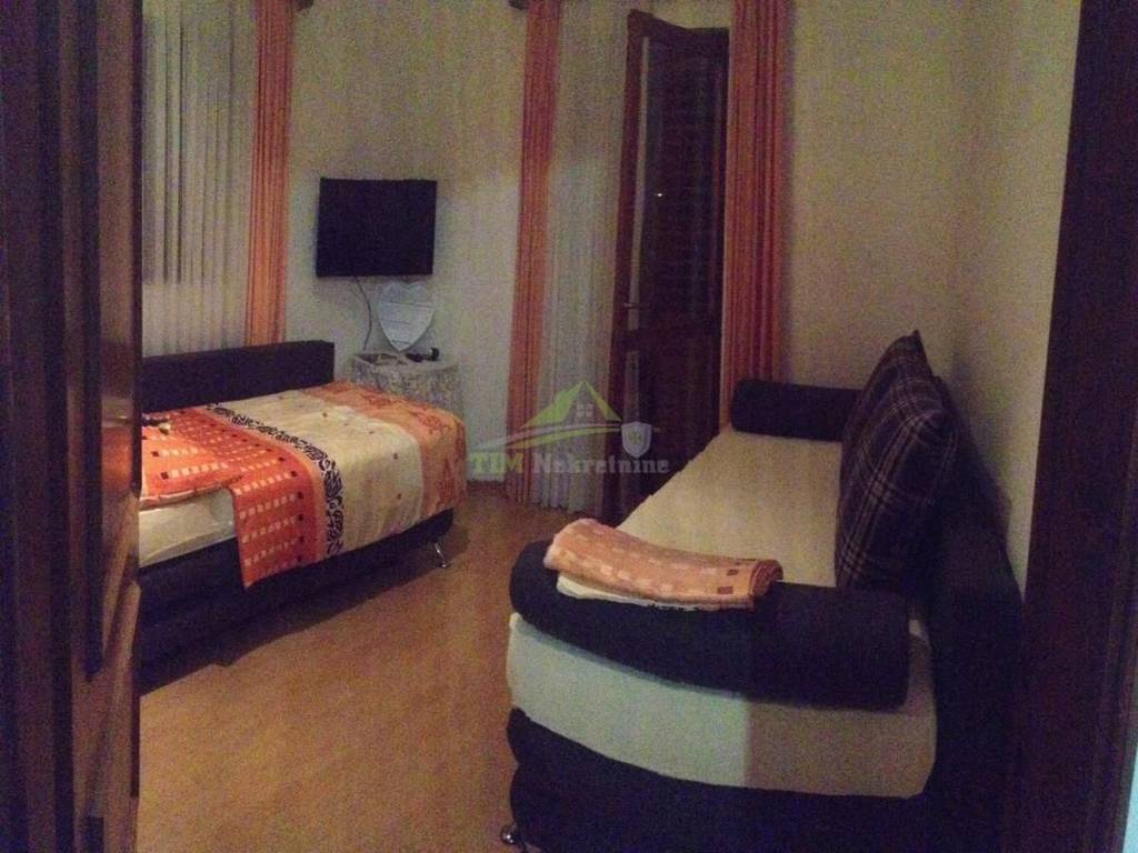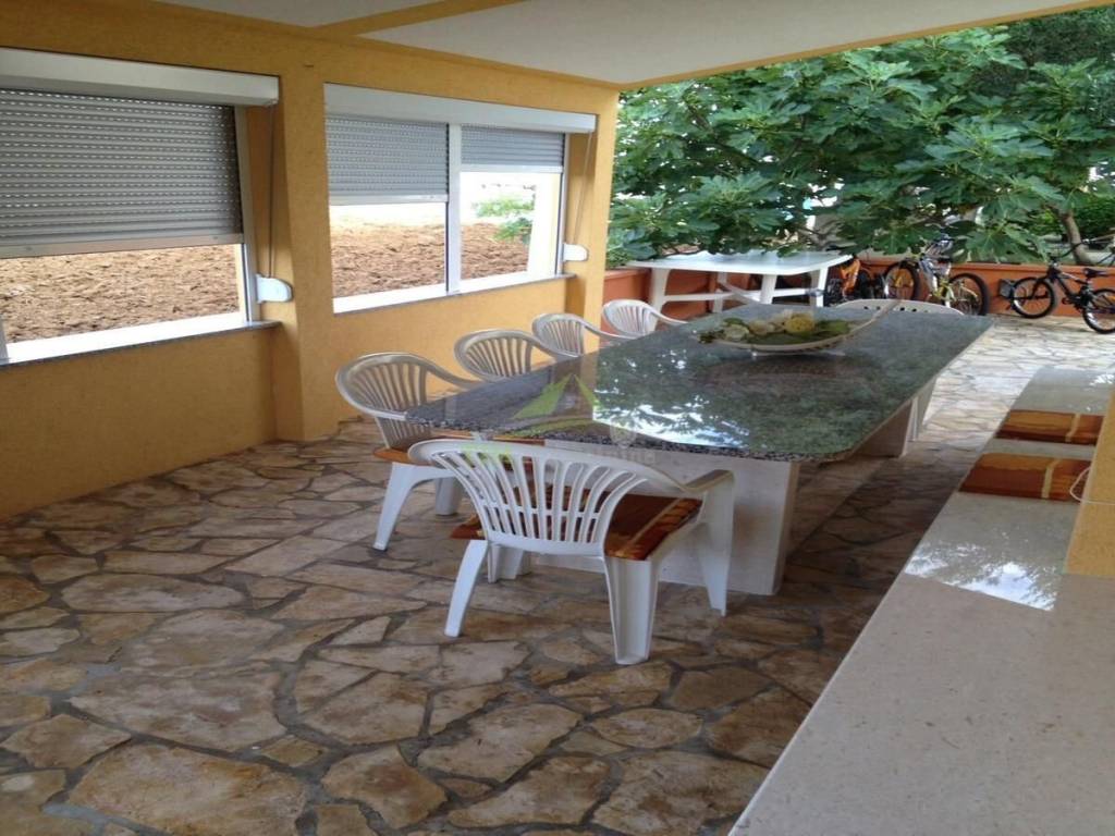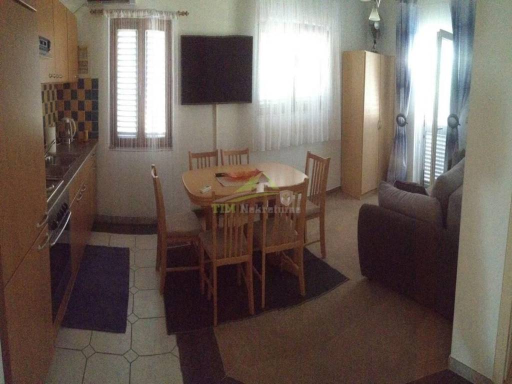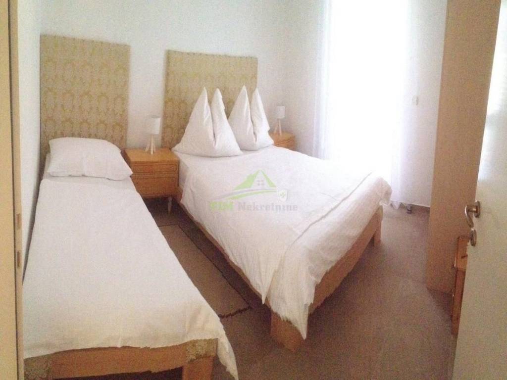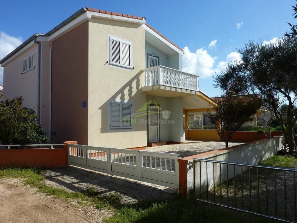 Prekrasna samostojeća kuća sa dva apartmana; kuća je tlocrtne površine 82 m2 + 40 m2 terase na zemljištu ukupne površine 320 m2 koje kompletno uređeno i ograđeno.Kuća se sastoji od prizemlja i kata; na svakoj etaži jedan apartman za 7 osoba (mogućnost dodatnog ležaja).Apartmani su kompletno opremljeni, namješteni i na novo uređeni.PVC stolarija, klima, u sobama parket i laminat u ostalim prostorijama keramika.Udaljenost svega 50 metara od mora; u neposredoj blizi svi sadržaji potrebni za život (trgovina, restoran, ambulanta, ... ).
