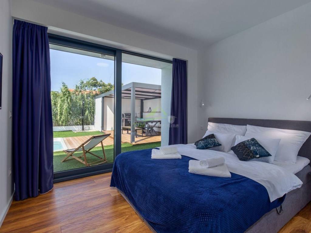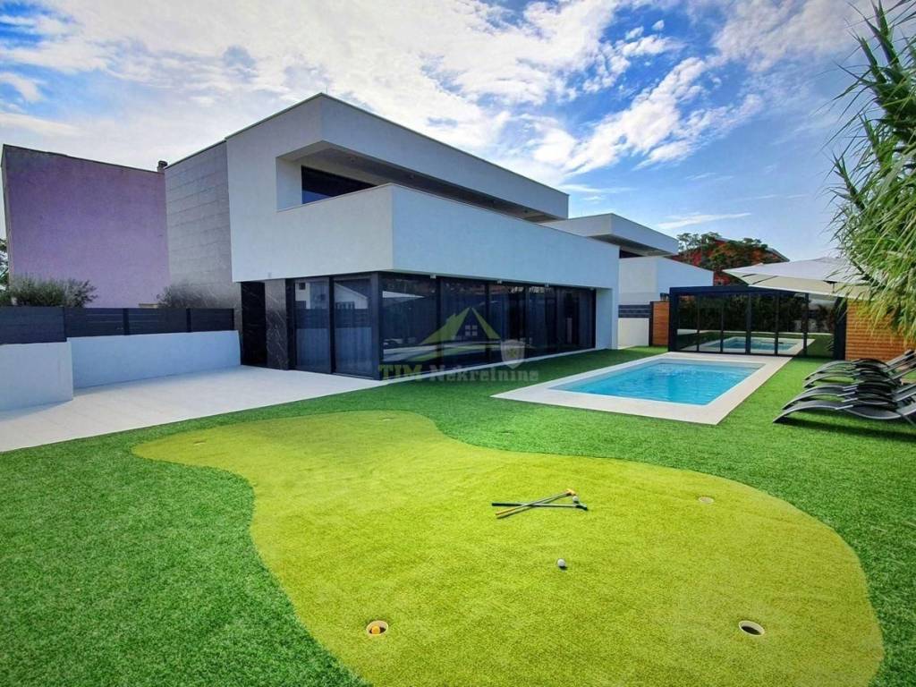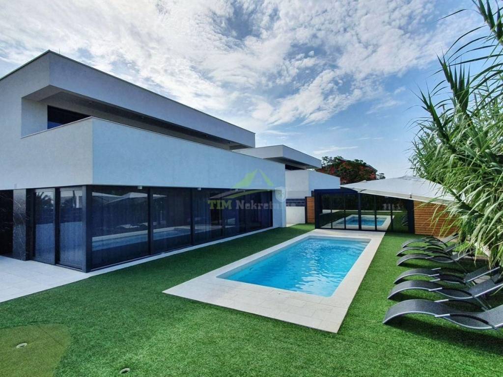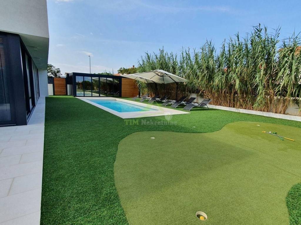 Kuća se sastoji od prizemlja i kata, tlocrtne površine 130 m2 na vlastitom zemljištu površine 500 m2.Eksterijer je planiran i kombinaciji vrhunske umjetne trave sa mini golf temom i sa prirodnim zelenilom te pravim biljkama.Vlastiti bazen; dimenzije 8 metara x 3.20 metara, dubine 1.5 metara.