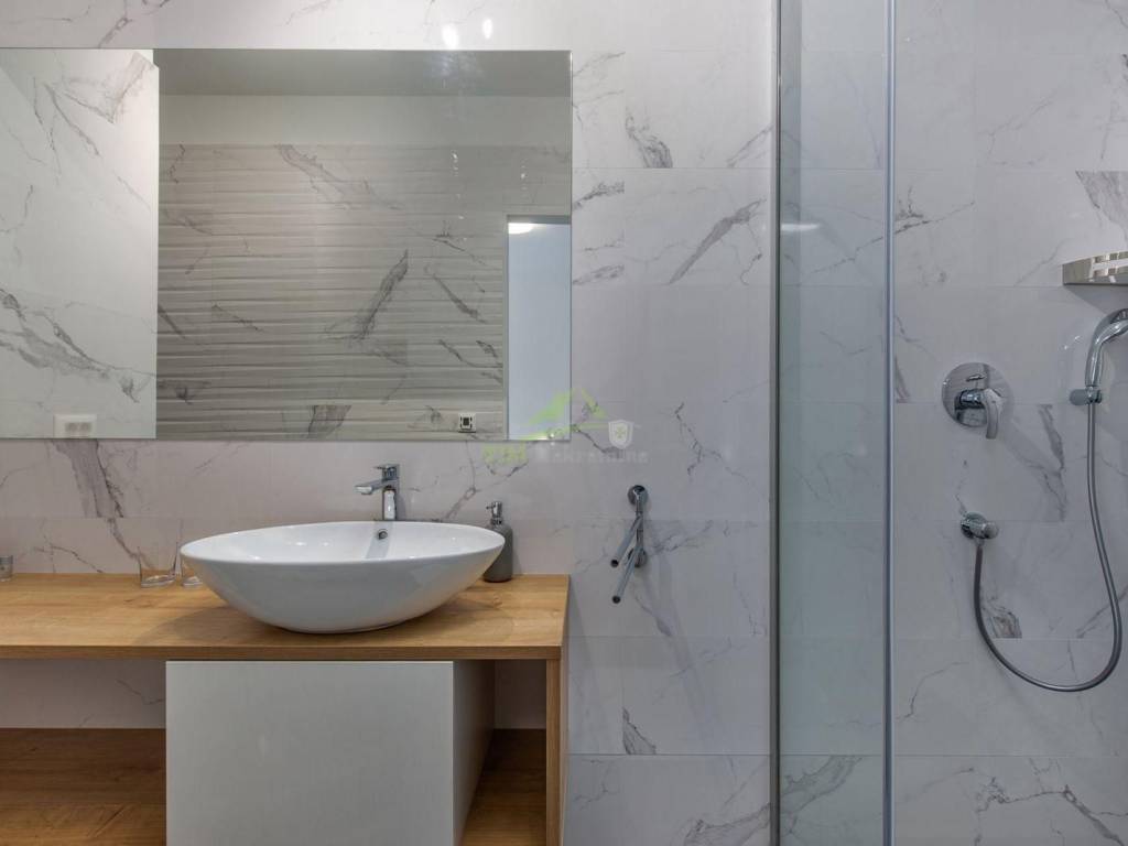 Vrlo kvalitetni materijali gradnje; ALU i PVC stolarija; termofasada; klimatizirane sve prostorije.U sobama kvalitetan parket, a u ostalim prostorijama keramika i mramor; grijanje putem klima.