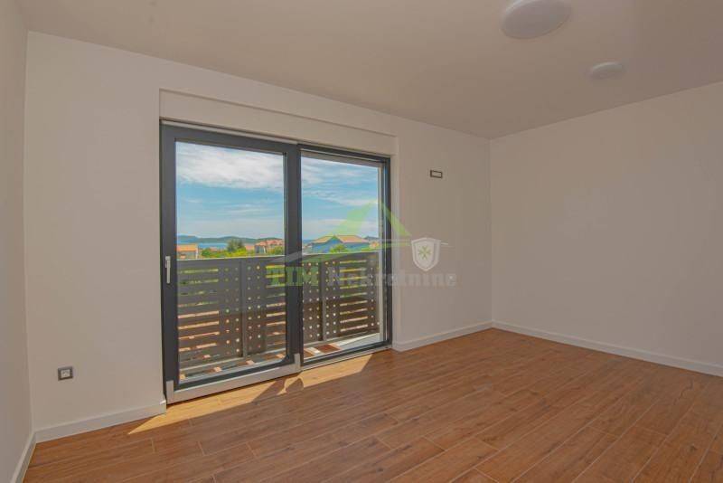 Novoizgrađena Villa u Vodicama sa pogledom na more je dio novog projekta koji se sastoji od ukupno 4 ville, smještene na rubnom dijelu naselja.Ukupna korisna površina ville iznosi 135.82 m2; sastoji se od dvije etaže, prizemlje + kat + prohodnu krovnu terasu.Krovna terasa ima površinu od 52 m2 na kojoj je sunčalište sa pripremom za mogući Jacuzzi.Okućnica je u potpunosti ograđena sa površinom od 200 m2 s prostranim parkirnim prostorom (za 2 mjesta), prostorom za vanjski roštilj te bazenom površine 22 m2.Villa je udaljena 1600 metar od plaže i 1300 m od centra grada.Građena je po visokom standardu kvalitete što dokazuje i energetski certifikat A+ klase, opremljena sa: